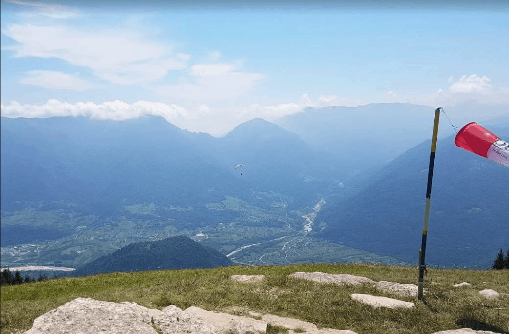Paragliding launch area of Delta Club Feltre, characterized by a steep slope, is on top of the Avena mountain at an altitude of 1417m ASL