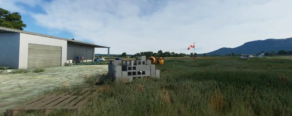 Challenge: find it! Short track, runs along the highway. N 43 28 48 E 005 42 37Altitude 787 ftQFU 12-30Grass (365 x 27) This scenery adds a grass track.