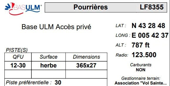 Base LF8355 – Pourrière, intended for ULMsLocation: border of Var and Bouches du Rhônes, France.