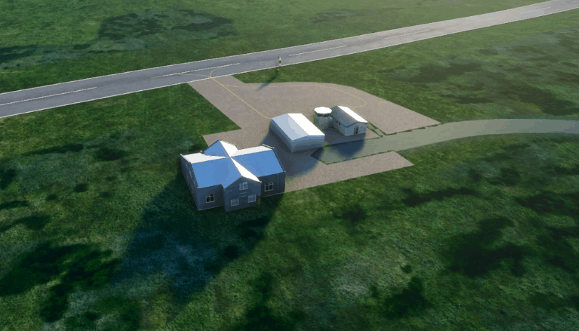 This is the airport in Grimsey and the buildings at the airport like they are in real life.