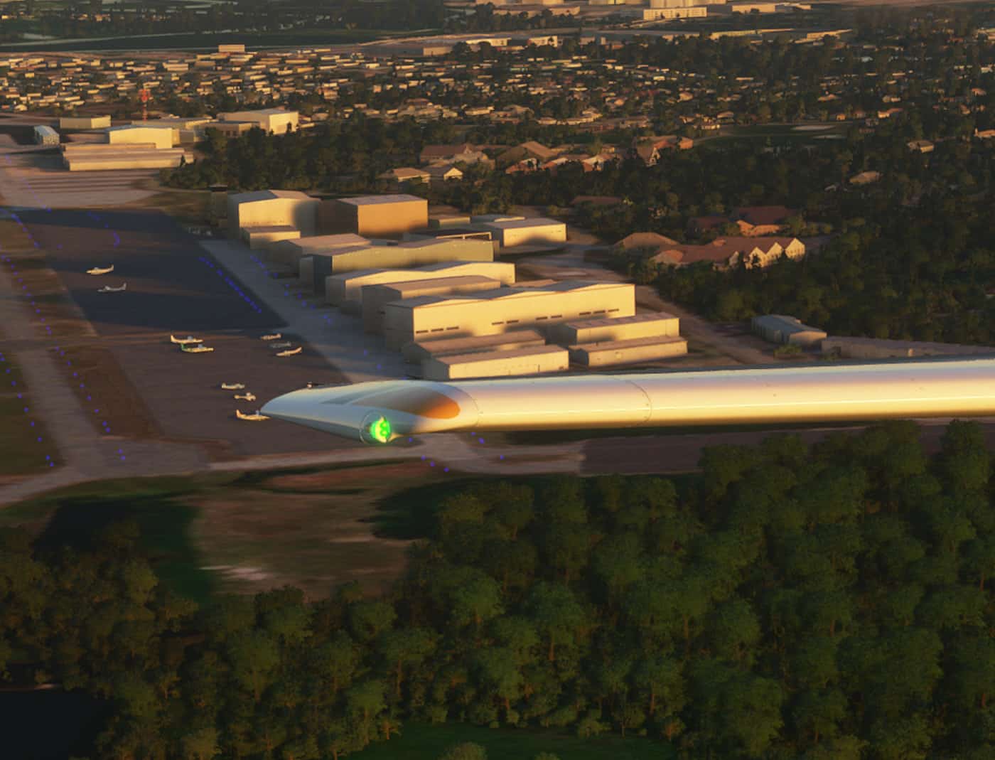 The hangars of the default rendition of the airport are wayyy too big, it had an incorrectly placed monster beacon, and the airport didn’t feel right at all. So I did my best to replace all the outsized hangars using default hangars in the software. I also added the water tower to the east of the airport that is an important landmark for pattern work and has been in every version of KASH in MSFS since they started having the airport. I have no idea how to use blender to create objects, but, if somebody would like to create some hangars that more closely match the real things I’d be happy to inegrate them in to the scenery (with full credit).