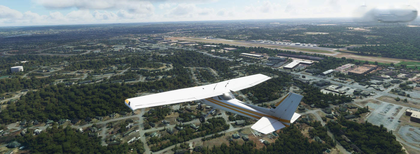 I included a couple of captures of the airport from Google Earth (yes, Google has it modeled in 3D), and the last two images show the airport in its default configuration.