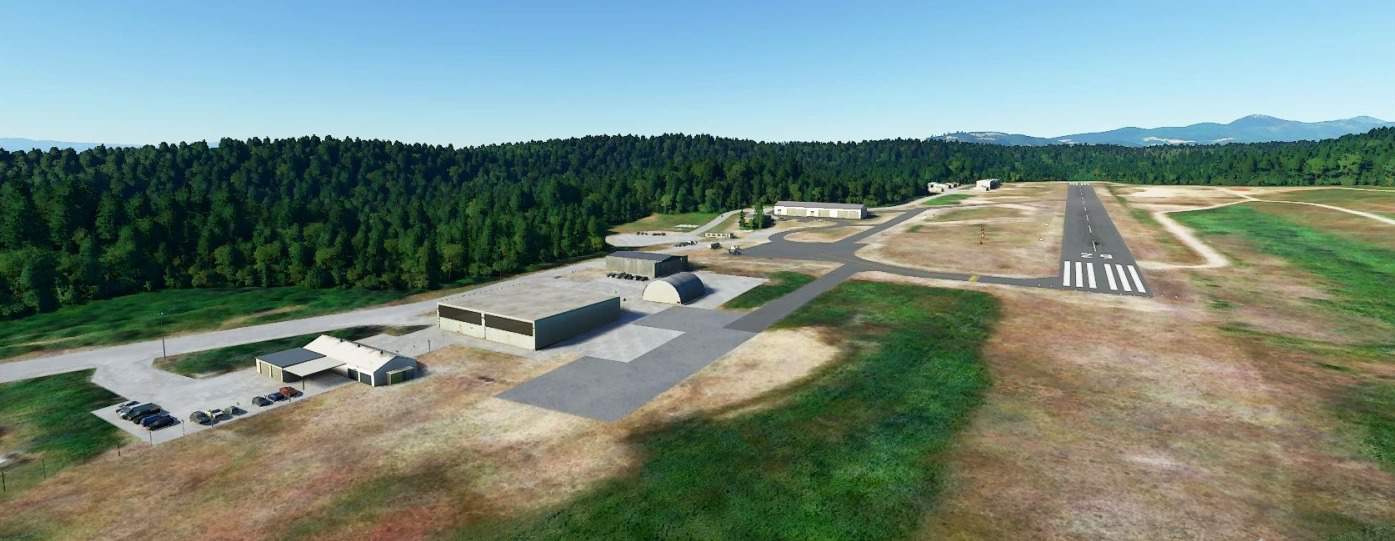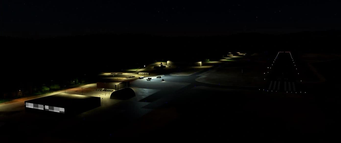 This scenery replaces most of the buildings and adds static planes, fence and night lighting.There are no custom buildings in this scenery. It uses only buildings currently available in the SDK.