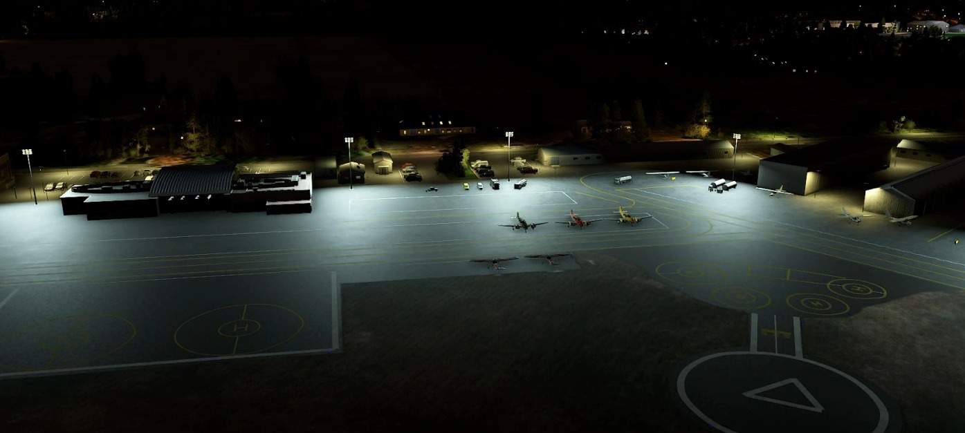 This scenery adds GA parking, car parking, static objects, taxiways and night lighting..There are no custom buildings in this scenery, it only uses the default terminal and buildings curently available in the SDK.