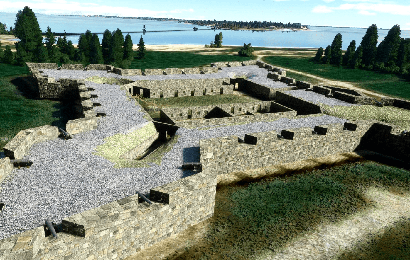 The scenery includes many custom models with PBR materials and night lighting. It also contains several landmarks around Churchill: the polar bear holding facility next to the airport, as well as Prince of Wales Fort and Cape Merry battery near the mouth of Churchill River. Approach lights have been updated according to Nav Canada information.