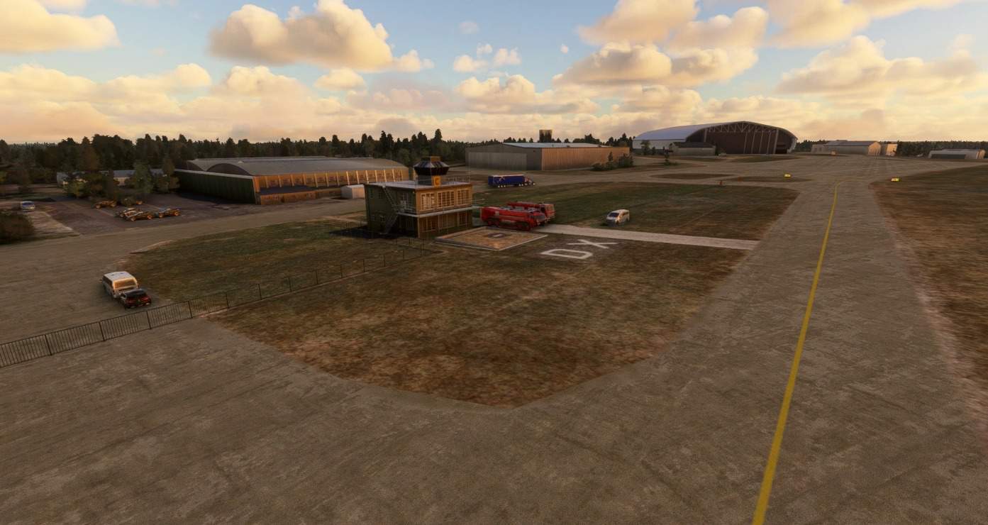 I have recrafted this airport from scratch and tried to match the real-world features as closely as possible. I have created custom models for some of the larger hangars, and used (lots) of base objects to complete the airfield.