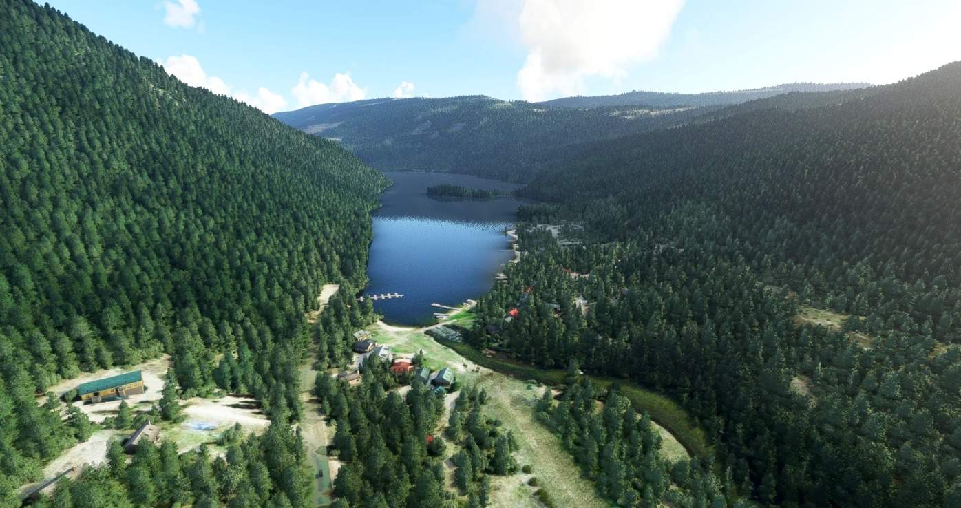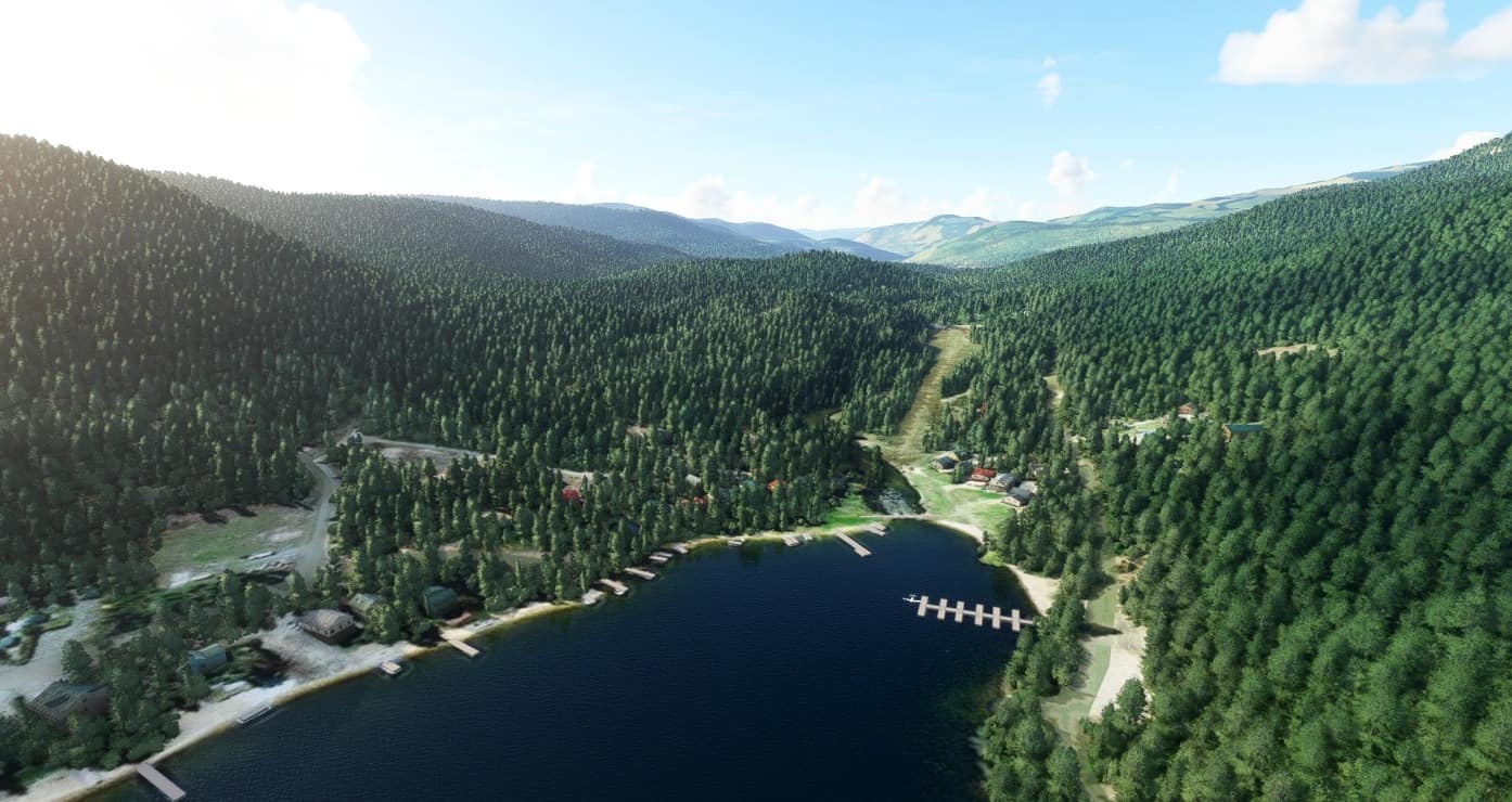 East Barriere Lake, approximately 40 nm north of Kamloops, is a popular camping and boating destination for locals and now you can fly in there again! The runway is little more than a 2000 foot patch of dirt but if you bring your own camping gear and kayak, it’s all you’ll need. The strip was real but the ident is fake. I’ve taken a bit of time to revamp some of the docks at that end of East Barriere Lake as well.