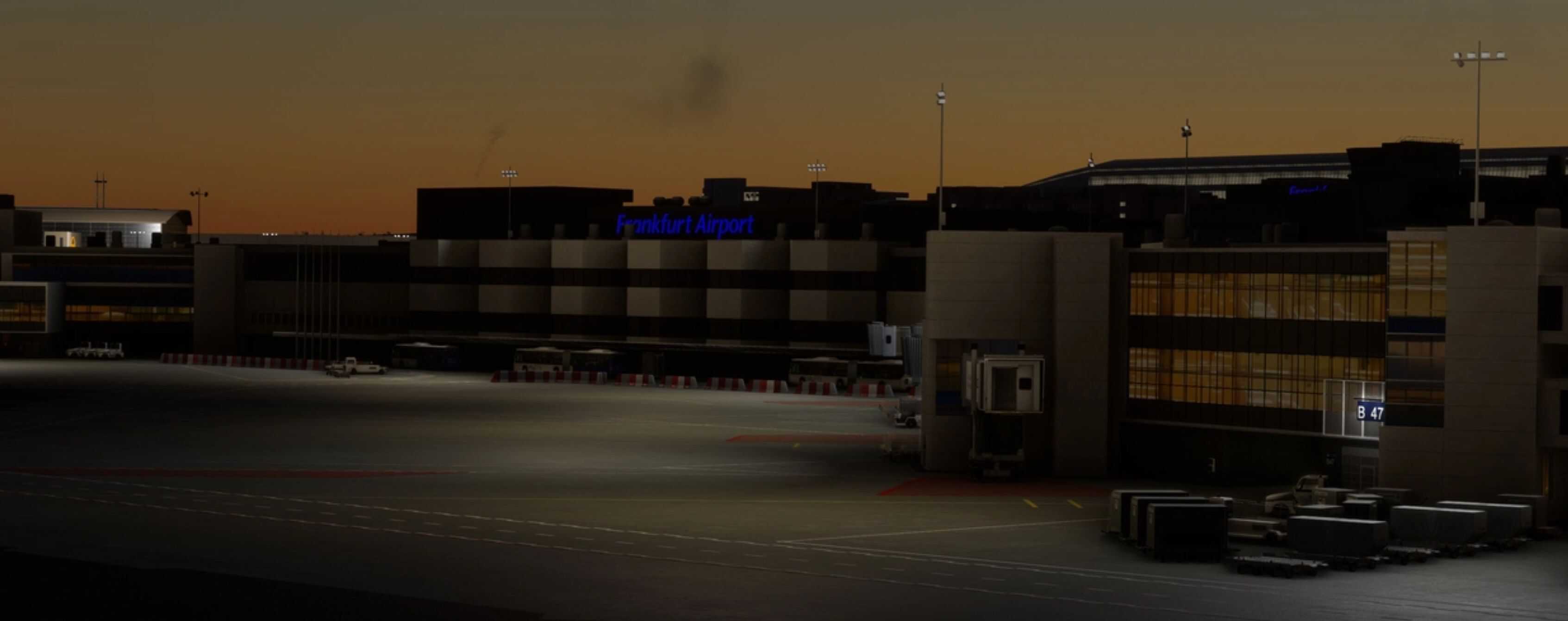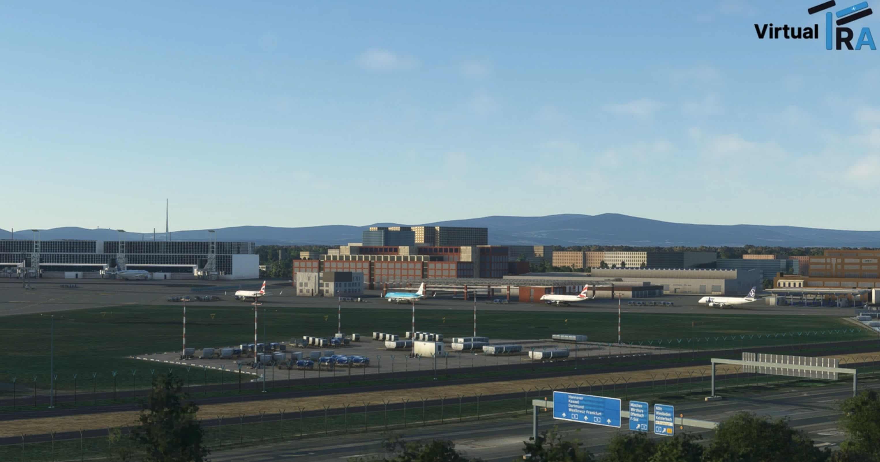 Welcome to Frankfurt International Airport As there is currently no real contender to Asobos Premium Deluxe Edition airport rendition of this important, a team around Integralo formed to develop a freeware Frankfurt Airport. VirtualFRA develops this airport in the spare time including, but not limited to the following: Custom buildings and assets, Correct and up-to-date taxiways and taxi signs, Correctly positioned lights and light sources, Living aprons with custom 3D models, Custom GSX-Profile, And many more.