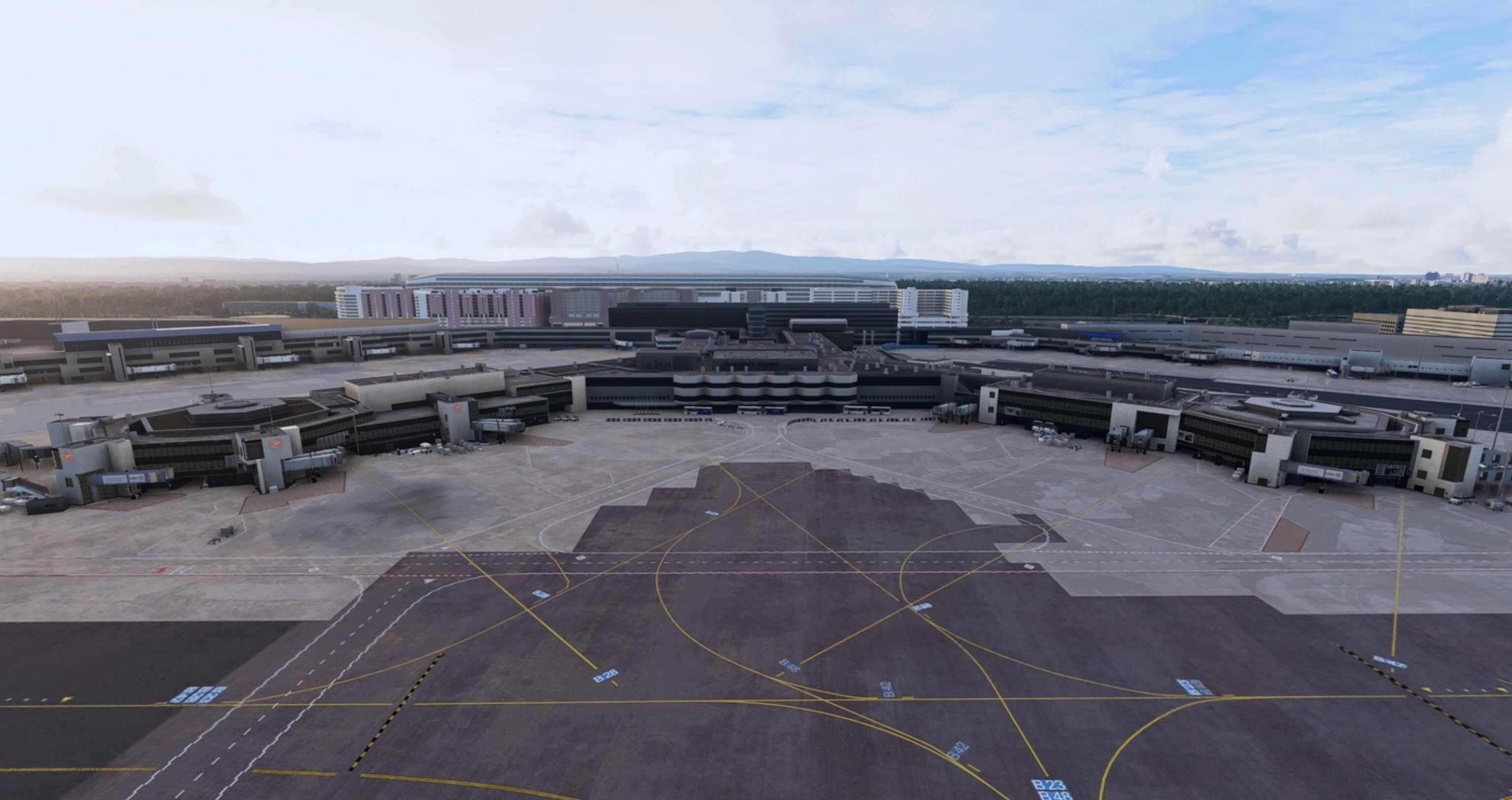The airport is in an active development cycle. Please note that many buildings, assets, textures are missing or wrongly placed. We will add more 3D-Objects and replace outdated ones incrementally.