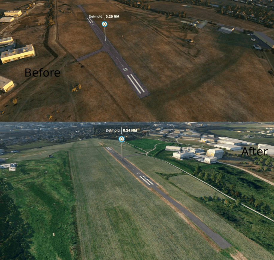 EDLJ, Detmold airfield and ground textures look ugly in MSFS, so I’ve created some better aerial images for it.