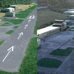 Terraforming of entire airstrip and complete surroundings by high resolution DEM data. (20m vertical, 0.1m lateral resolution)