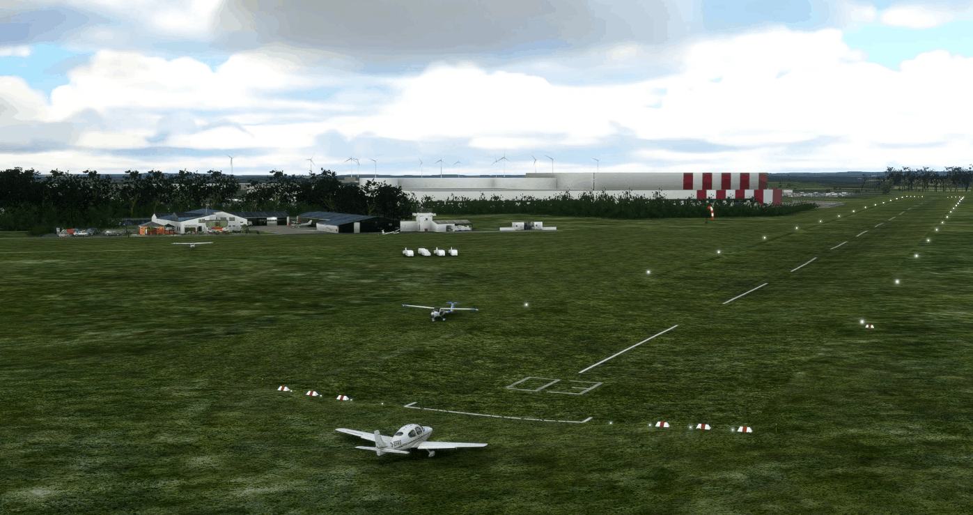 The main runway is 900 meters long and 40 meters wide. To the east there is another unmarked runway for gliding. This is 1200 meters long and 50 meters wide.