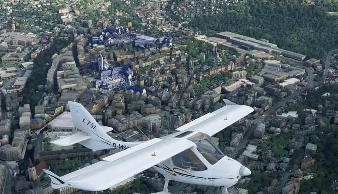 Original airfield with asphalt runway changed to grass runway, added landing riders, photogrammetric data of hangars and buildings, Siegen upper town, communication tower Giersberg added. Radio tower Eisernhardt modeled by hand
