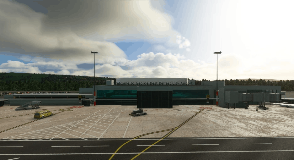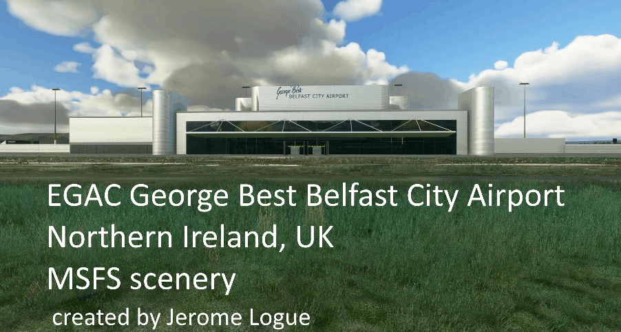 I started this project in 2019, sometime after uploading my Eglinton FSX scenery, and have been working on it, at times, since then. Custom building models, models, textures and materials created by me, Jerome Logue. I have used the excellent Asobo Jetway for Belfast City Airport’s Gate 4, and a few sparse sections of Asobo fence. I used ScruffyDuck Software’s excellent ADE, to help properly adjust the Airport layout in MSFS Developer Mode. I had created several tall Belfast building models, athough have decided to leave them out, as there seems to be some great freeware Belfast City Scenery available on this site, which I haven’t had a chance to download/try out yet, so this release is designed to be used with the default MSFS scenery.