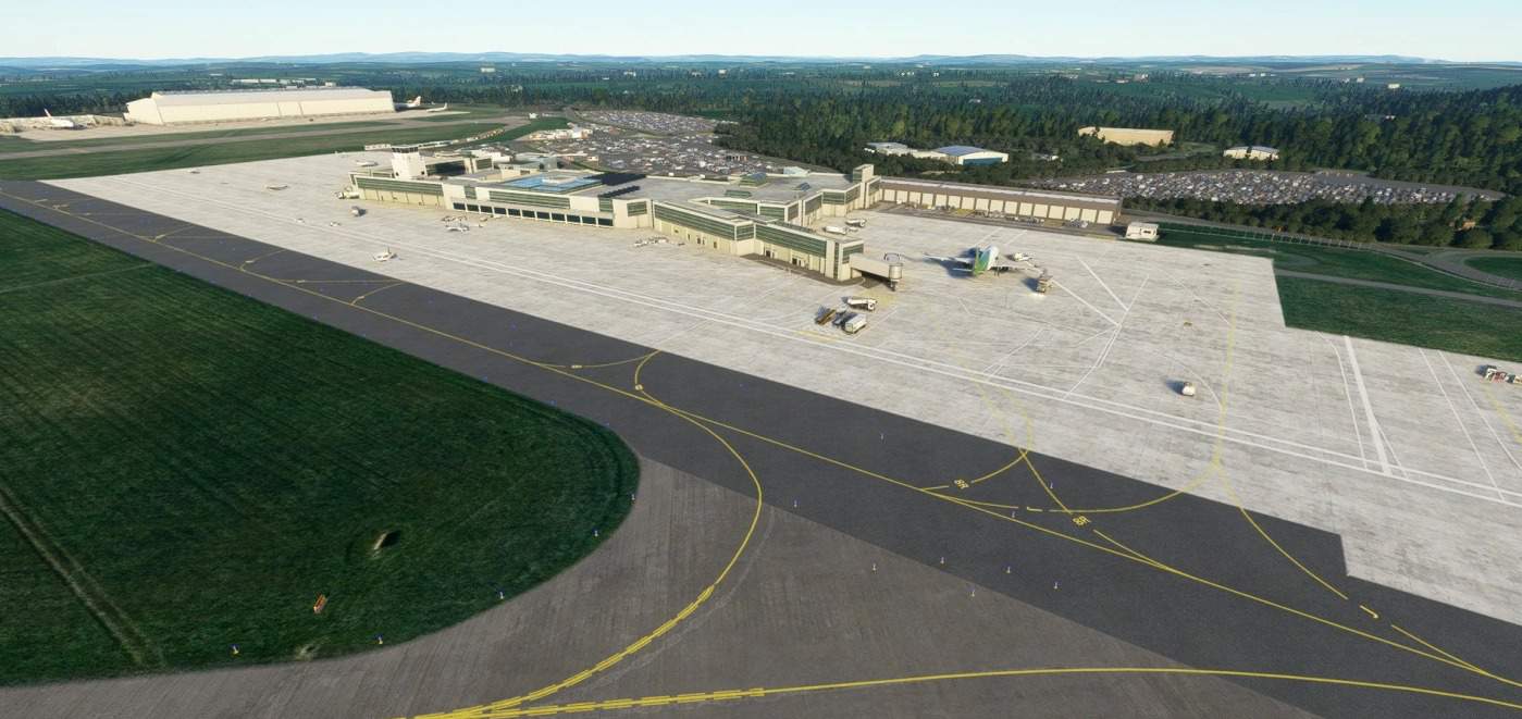 All the textures have been binned and replaced. Many a building has had a more appropriate replacement. Car parks, outlying areas like the fire training, GA section, British Airways Maintenance and more have been filled out. Light has also been liberally applied.