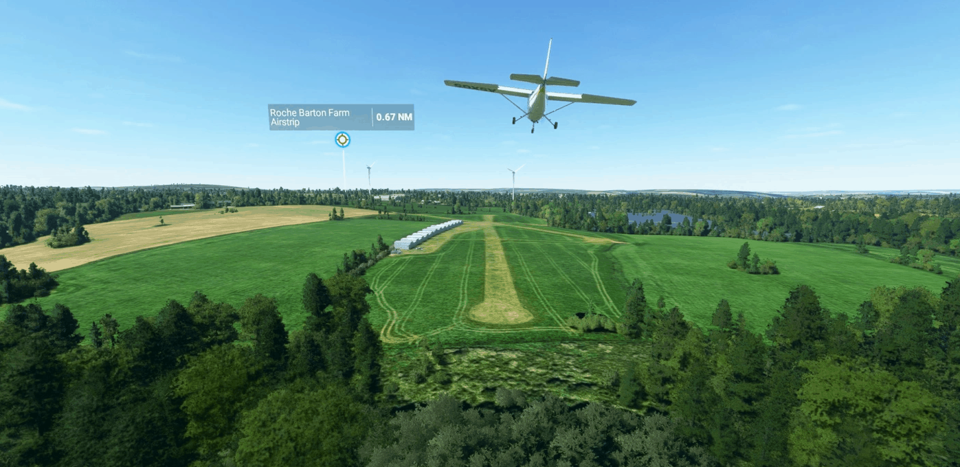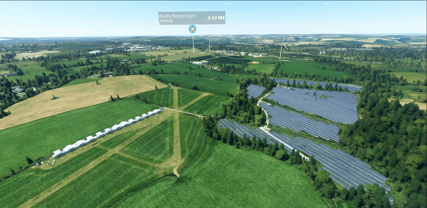 This airfield is in totally the wrong place in sim. You land on an empty field with some wind turbines right in your face while the real one is visible and pining for you half a mile away.