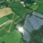 Not a great deal done to this. What I think are correct runway numbers, done some sort of slope to match what I guess is reality. The solar farm is filled out, hedges added, T hangars as well.