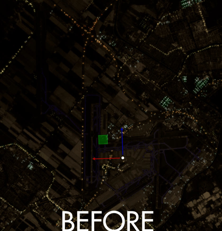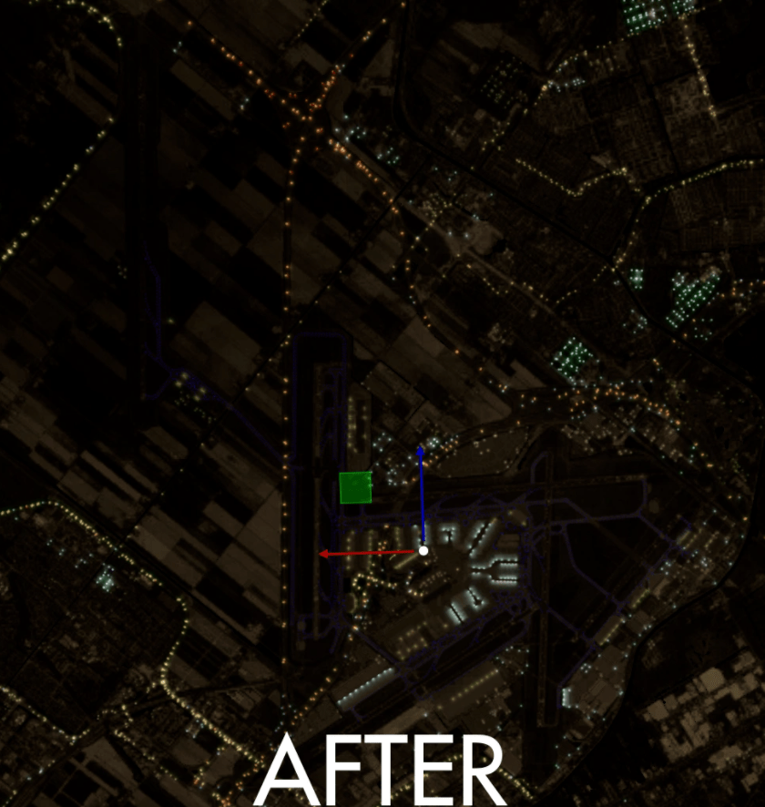 This scenery only applies extra lighting to the buildings of Schiphol Airport.