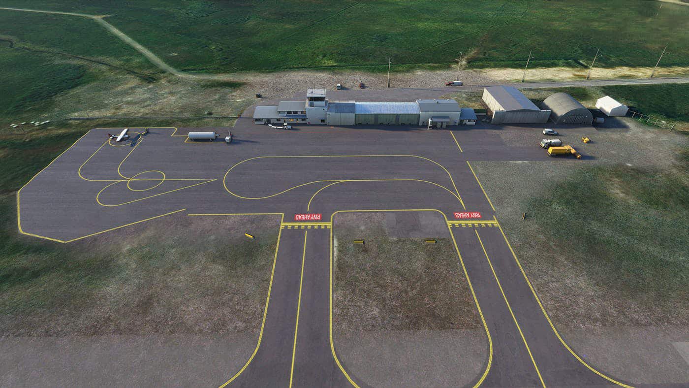 This airport uses 100% default assets plus a few custom apron-runway textures.