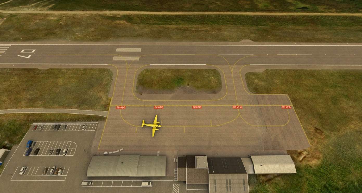 Improved airport markings, parkings, terrain, buildings.