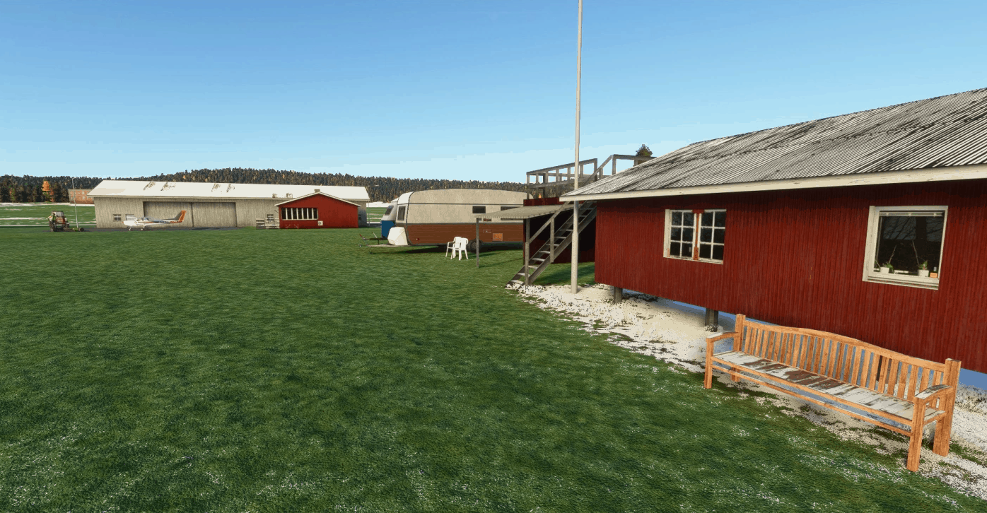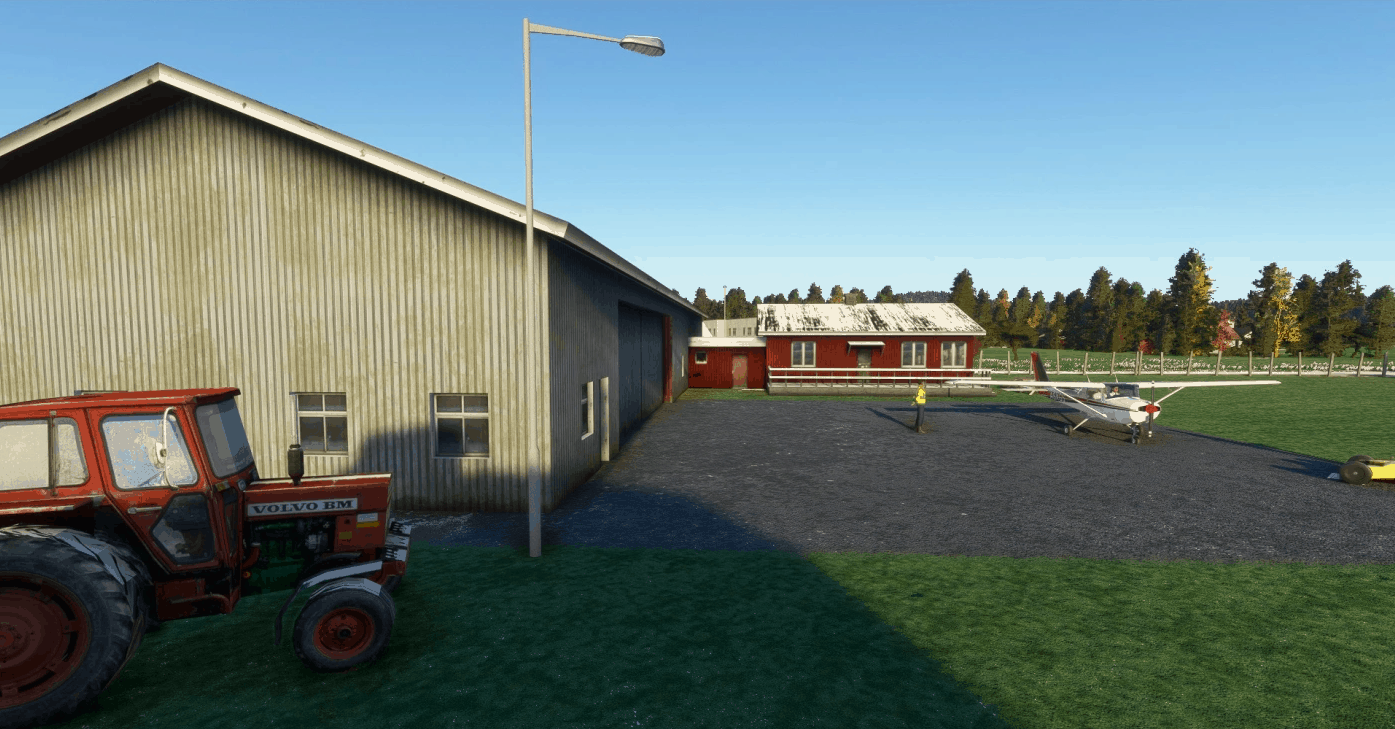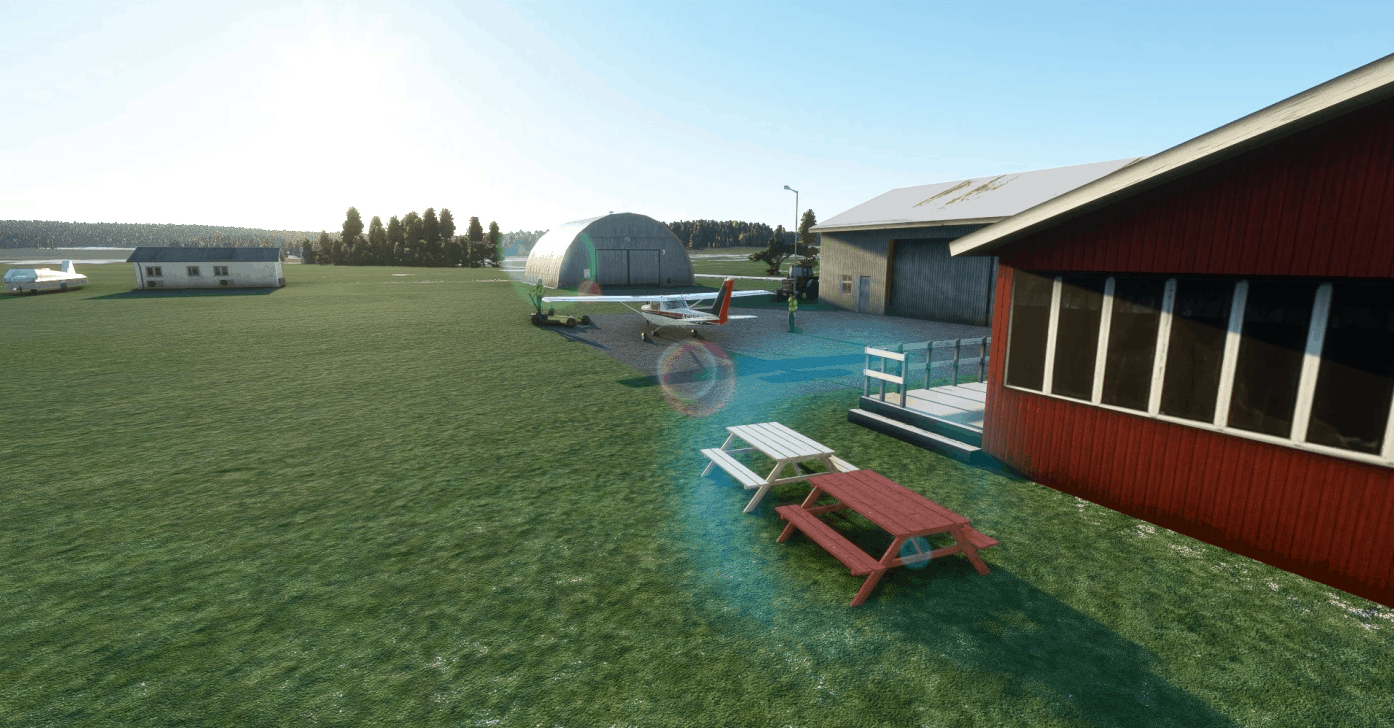 This is a small grass airfield on the west coast of Sweden. It is really close to the border to Norway. The airfield is home to flying clubs for motor and glider pilots. The first club was formed already in 1934 but the airfield was not built until late 60:s I believe. Most of the buildings are handcrafted in Blender. Enjoy your flight.