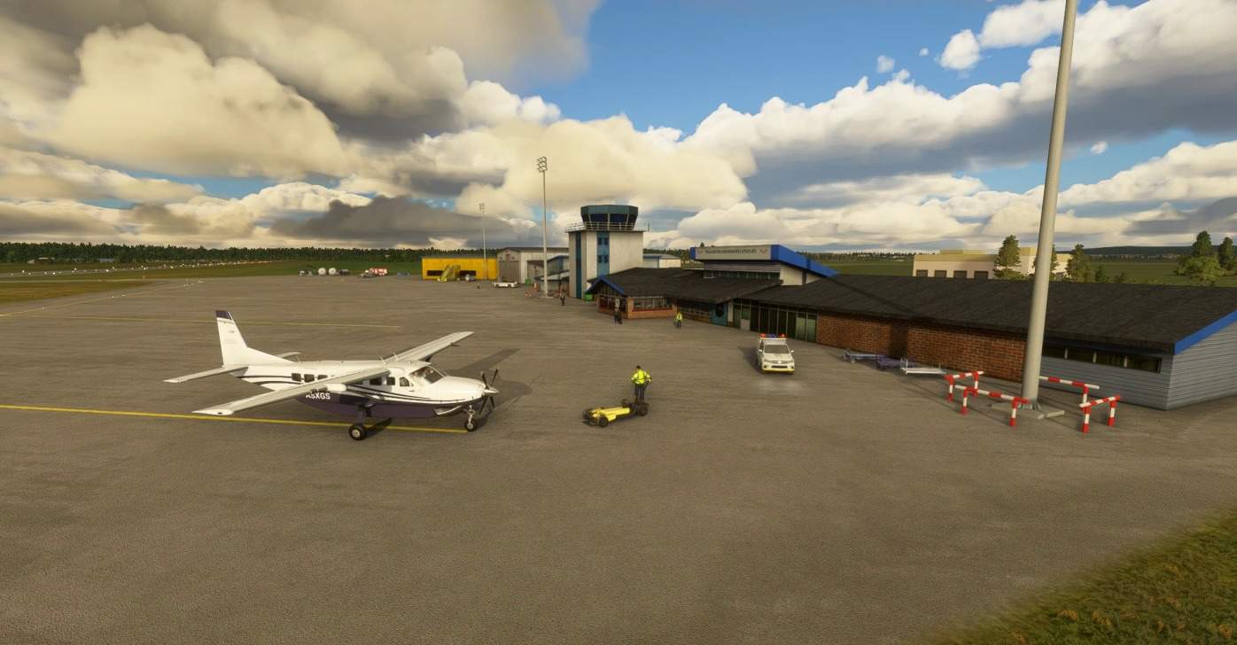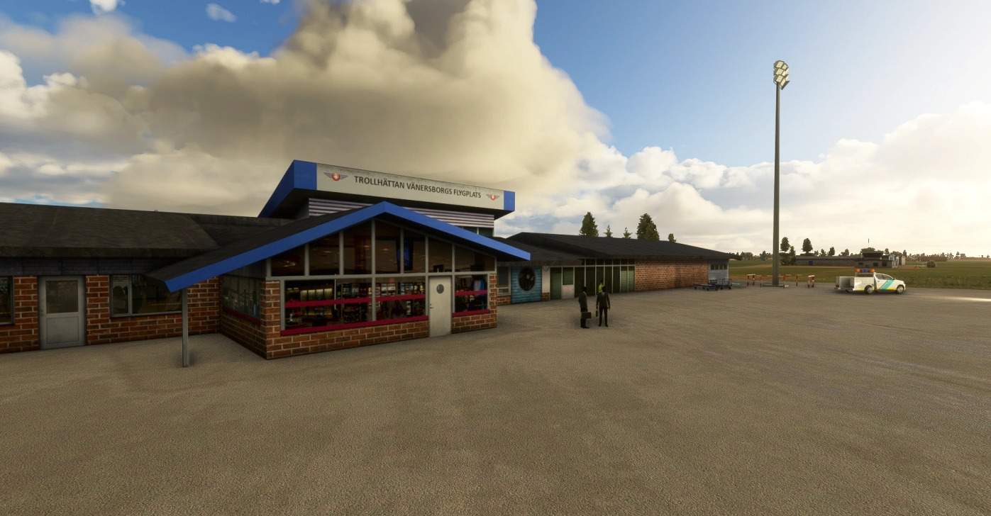 Trollhättan-Vänersborg is a small regional airport that used to be quite busy. It is close to the old Saab factory and I have modeled the Saab main building with the old sign for nostalgic reasons. There are two aeroclubs on the airport, a motorclub and a glider club. The glider side is yet to be added. The motor club has buildings that somewhat resembles the real ones. I have modeled all the buildings from web information. I have also built the bridge over Göta river and managed to make it carry the vehicles across. The bridge has custom night lighting. I have tried to create custom made taxiway lights since the SDK don´t make it easy to create with any control. Have a nice flight.
