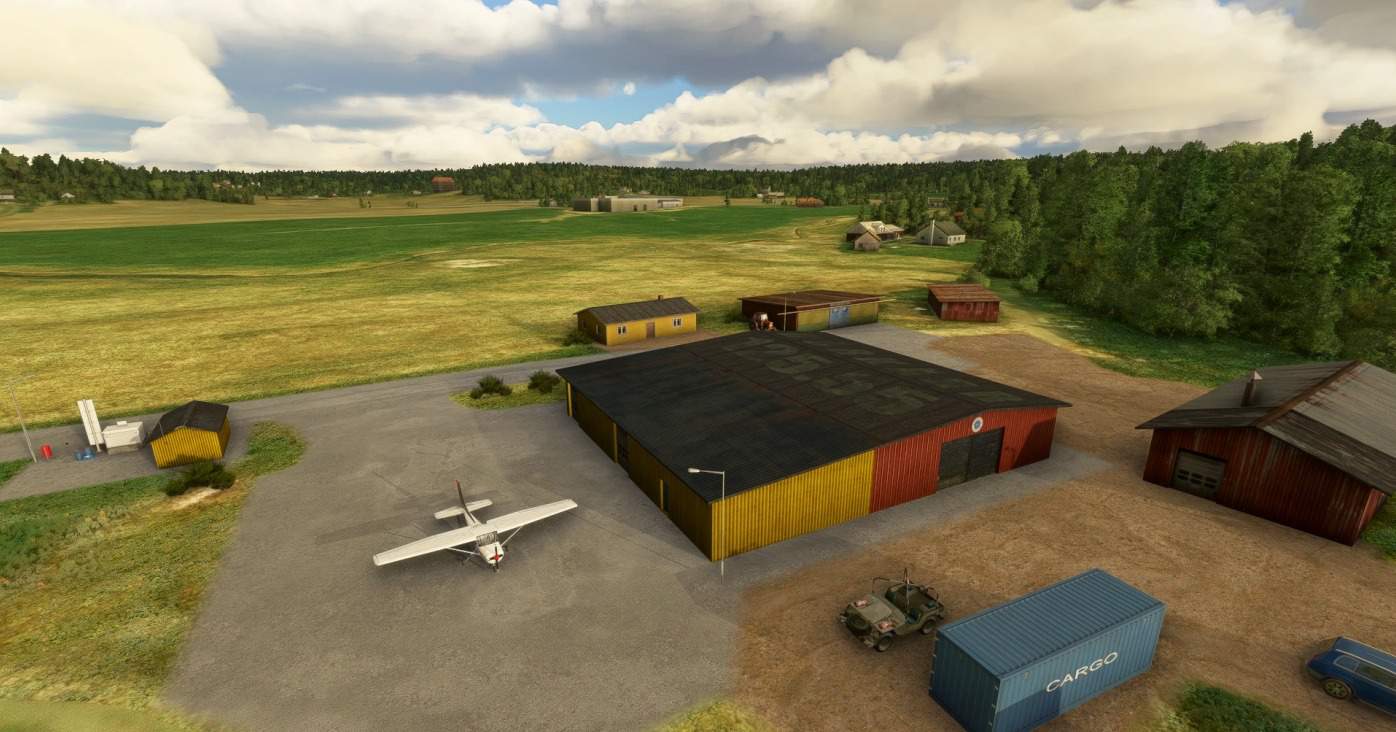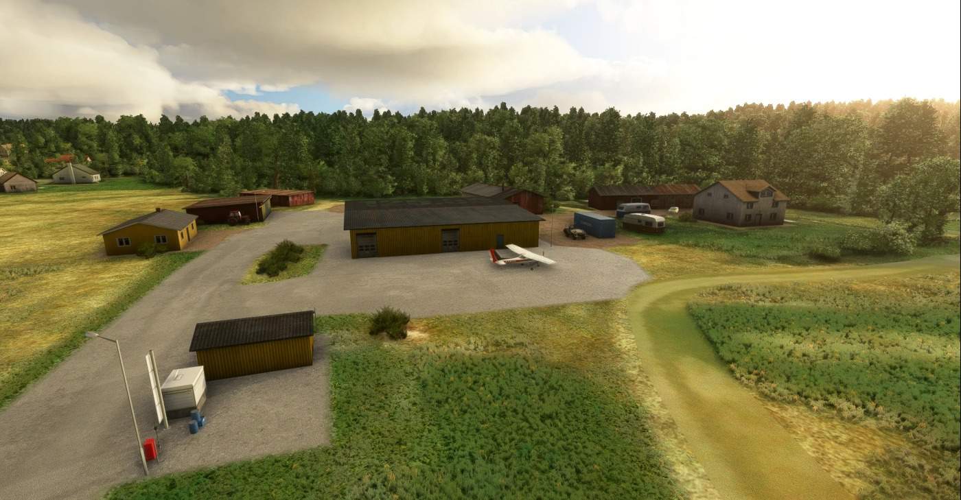ESGU Uddevalla is a small airfield close to the west coast in Sweden. It has a grass runway that splits Uddevalla golf course in two parts. Unfortunately you won´t find any golfers on the course as the grass is to long. I have modeled all the buildings based on photos from the web, includigt the golf clubhouse and their equipment garage. There are to many streetlights over the area at the moment since roads are crossing. Hopefully we will be able to edit this in the future. The airport is a close low level flight along the coast from my other airports, Backamo and Kattleberg. Enjoy it.