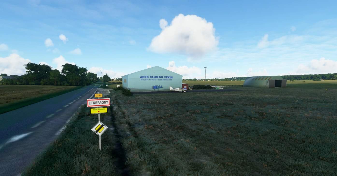 Etrepagny airfield is located a few yards east of the city of Etrepagny (70km NW of Paris, France). Only one 600 meters grass runway, 2 hangars and one clubhouse. A lot of details have been added such as road signs, bushes… I recreated all buildings and textures by hand, with help of local air club pictures and… Google StreetView
