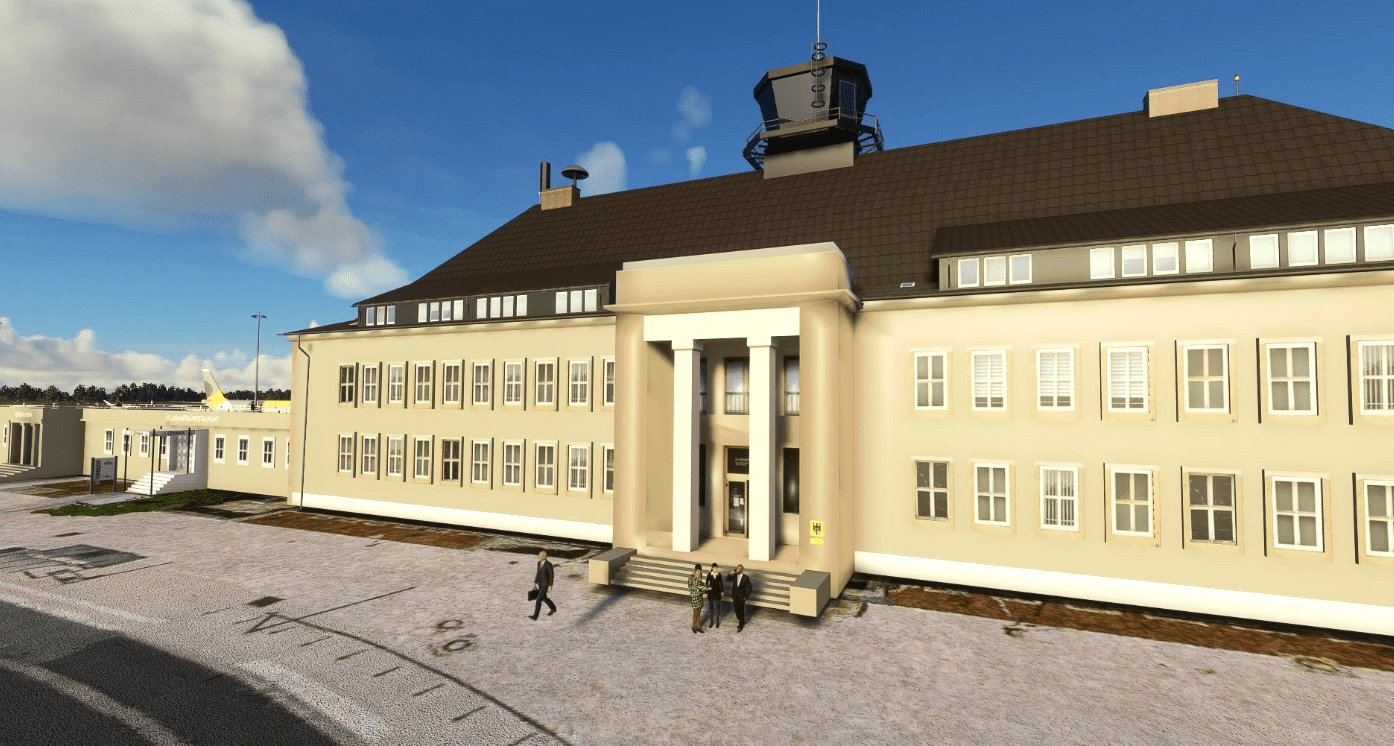 The main building was completed in 1939 and served civil aviation for only a few months before the war. After the war, the airport site was used as agricultural land before it was allowed to be used again for gliding in the early 1950s and as a grass runway for powered flight from 1955 onwards.