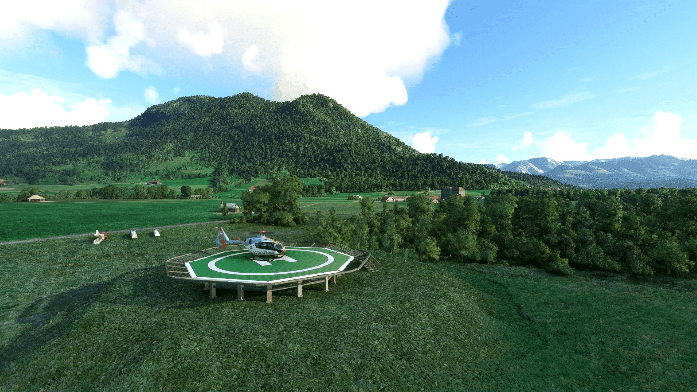 This is my first self-made scenery. The airfield area was extended by some fictional elements. Like the illuminated helipad (Where you can land after a nice helicopter sightseeing flight in the Allgäu Alps).
