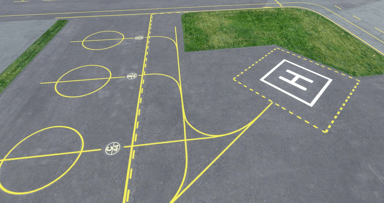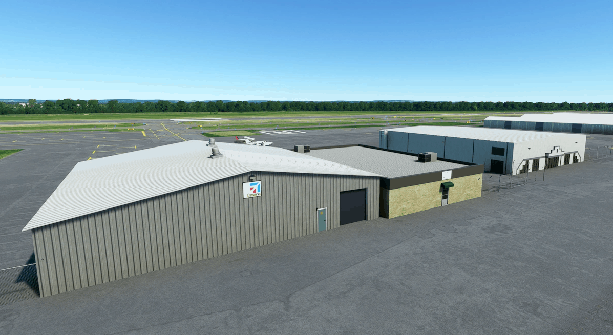 Hartford Brainard Airport – Located just south of downtown Hartford, CT alongside the Connecticut River. This package corrects taxiways and taxiway signs and includes 2 Helipads present at the real airport. Buildings are all hand-crafted in Blender with PBR textures and are modelled after their real-world counterparts. Custom labels on taxiways and by helipad. Control tower now appears correct for this airport and has a rotating airport beacon on the roof as in real life.