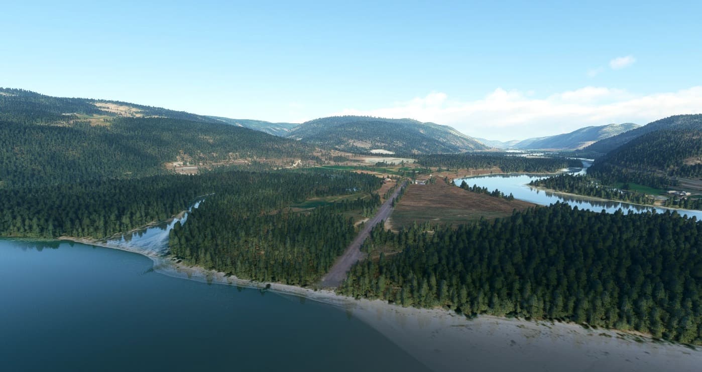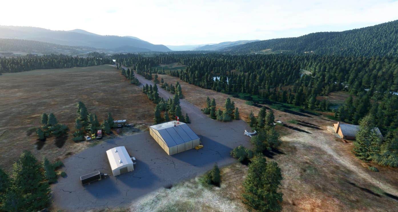 This 2600 foot strip is nestled in the trees approximately 12 nm north of Kamloops up the North Thompson river, technically not on Heffley Creek but across the river from it. It used to be the home to a Navajo though I believe it to be unused at this point. The ident is fictional but the field is real. In the parking area you’ll find a large hangar and storage shed with enough space to store all your old cars and trucks.