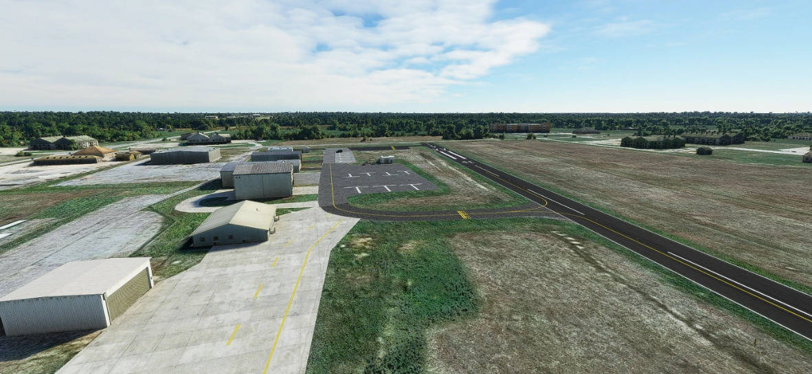 KAQR is located just outside of Atoka, Oklahoma. It was in the middle of runway improvements when the satellite photo was taken for Bing. I believe that’s why it wasn’t built in the initial build due to the runway being closed at the time. They resurfaced the runway and added PAPI2’s and MIRL’s, which I added to this scenery. The scenery uses all standard objects, but I plan to make some custom hangars in the future.