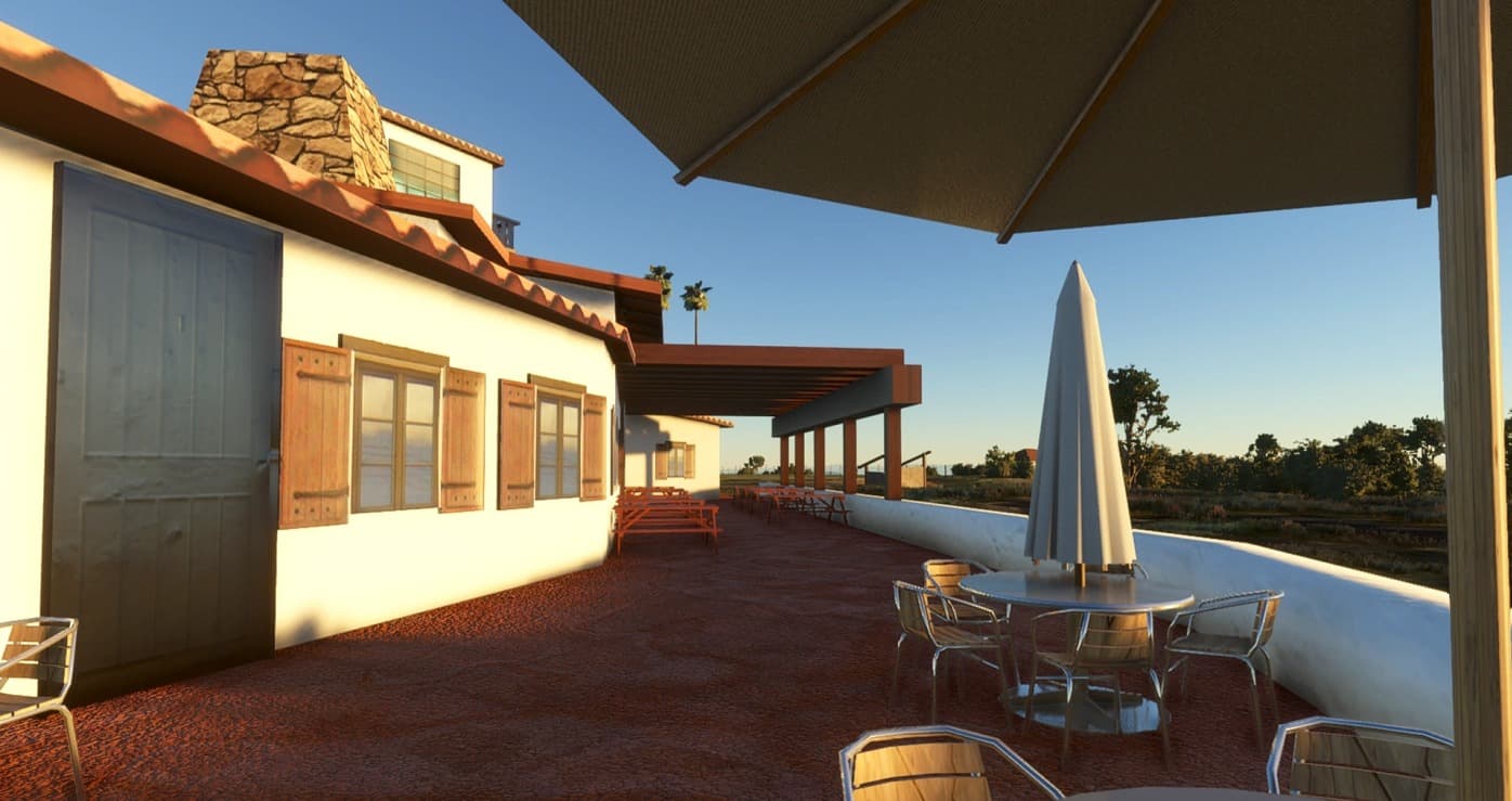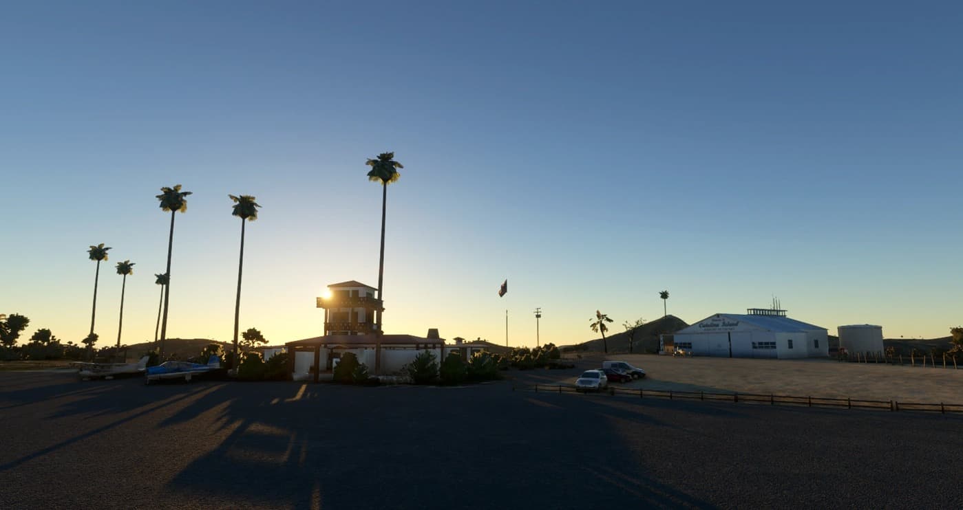 – Terraform to slope runway like the real thing. – Custom Terminal (faux) tower/shop/restaurant.- Custom “Catalina Airport” Hangar.- Custom California Palm Trees- Custom Wood Fence by parking lot.- Custom Avalon “Ballroom” round building. – Reworked ground textures.- Updated runway to new Repaved version and updated all its markings. – Custom “Barrel” Segmented Circle.- Custom Island Buffalo Herd found at 2 locations ( try and spot them!) – Added a few misc items to make it look more interesting.