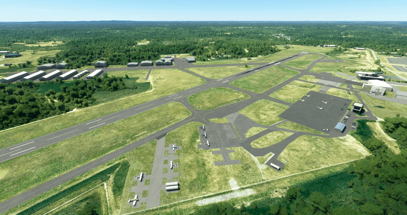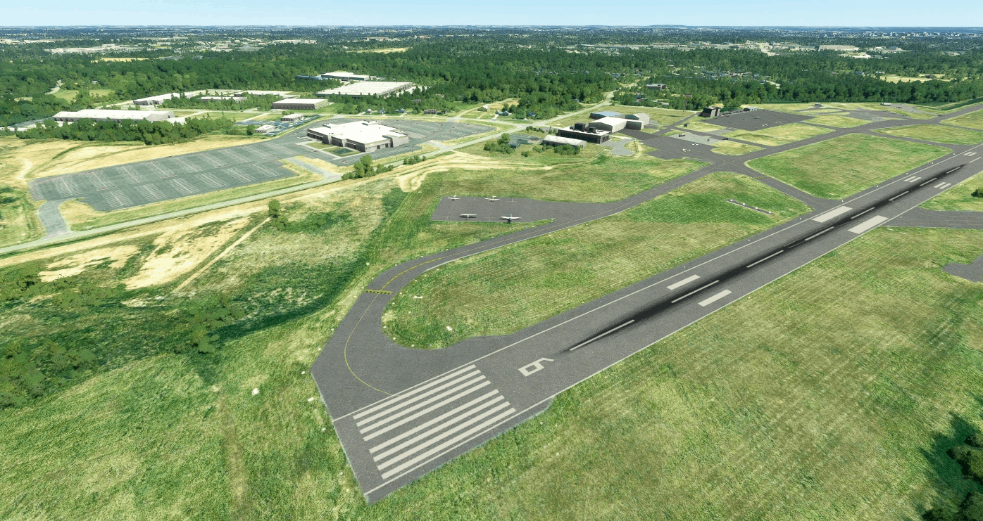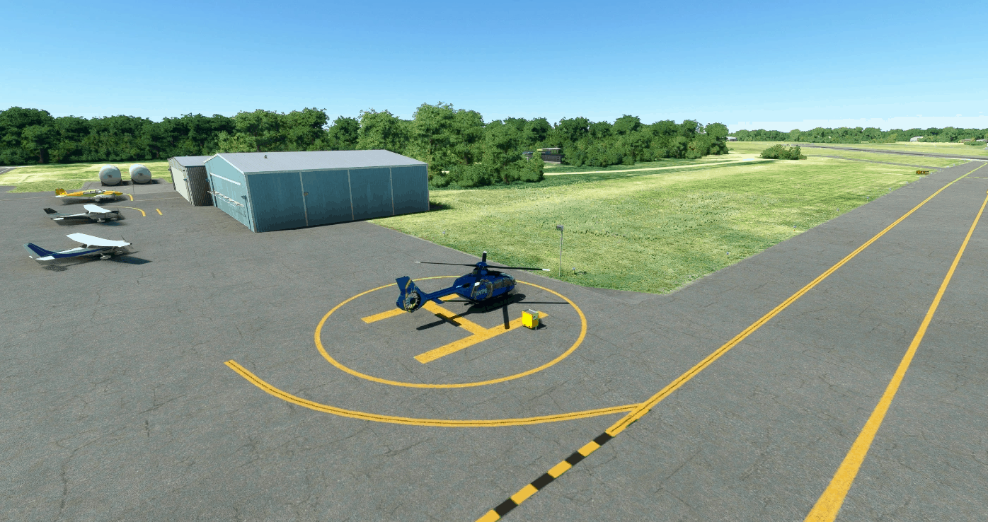 I have tried to recreate this airport as close as possible to the actual airport using only objects from the ASOBO libraries. Unfortunately I found nothing that I could use for the terminal so it is just the ASOBO generated building. All taxiways are correctly named. Aditional aircraft parking added. Heliport added with parking designated as Ramp 28|Parking. Night lighting added. Automobiles removed from parking lot and replaced by rows of parked automobiles.