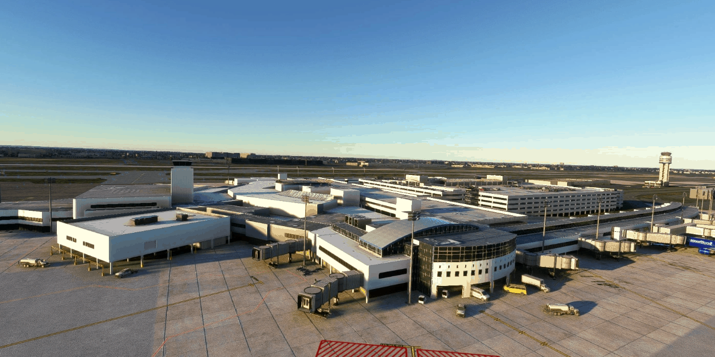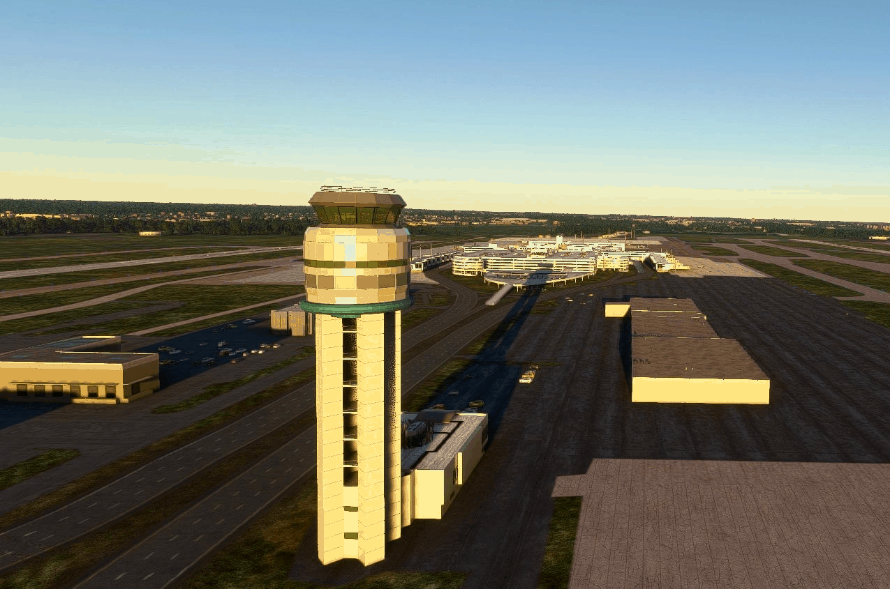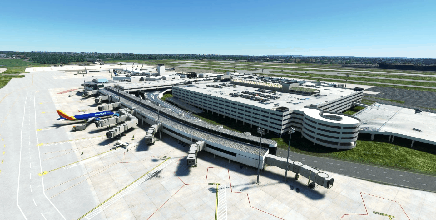 In this version, all runways, taxiways, and taxiway signs have been corrected. The main terminal and concourses A, B, and C have been modeled along with the new ATC tower and parking garage.