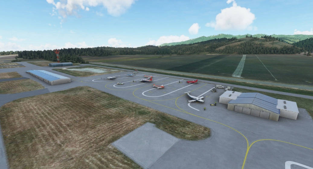 This is my first scenery on the sim. I put about 10 hours into learning everything and applying it to this lovely airport. No custom models yet (coming to my next airport). I add an extra static aircraft. Improved multiple hangars and completely rebuilt the cafe (includes picnic tables). Expect more to come with new versions. This is an exclusive scenery.