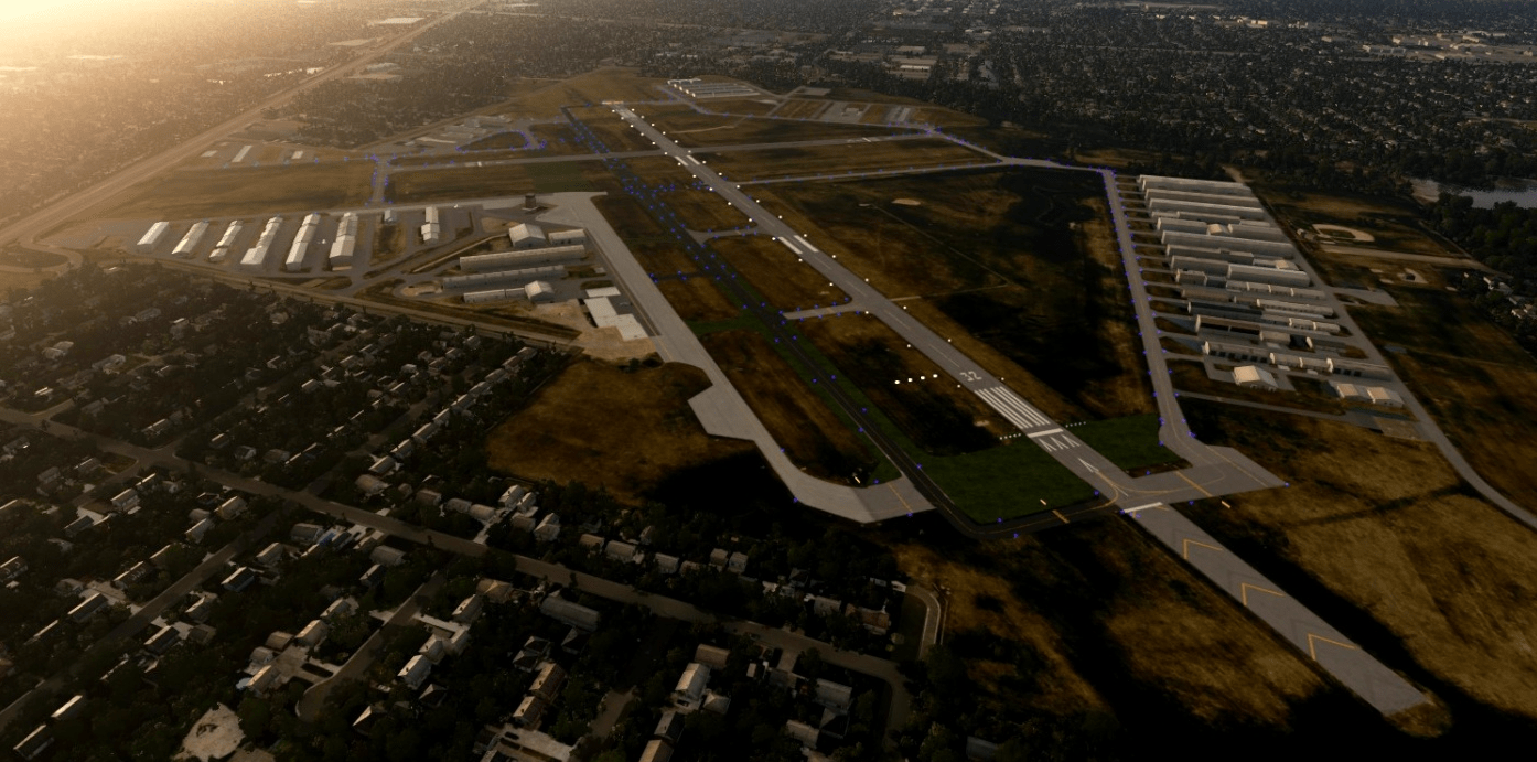 Crystal airport is a reliever airport in the northwest suburbs of Minneapolis-St. Paul in Minnesota which originally opened in the 1940’s. This airport saw a major reconfiguration in the fall of 2020 which this scenery intends to fix. The major changes are the removal of runway 14R-32L which was replaced with taxiway G and the extending of the former runway 14L-32R (now renamed 14-32) by roughly 500 feet. This scenery depicts the view of the airport based on the photos I was able to find during the construction. Thus the grass is newly growing after completion of the construction.