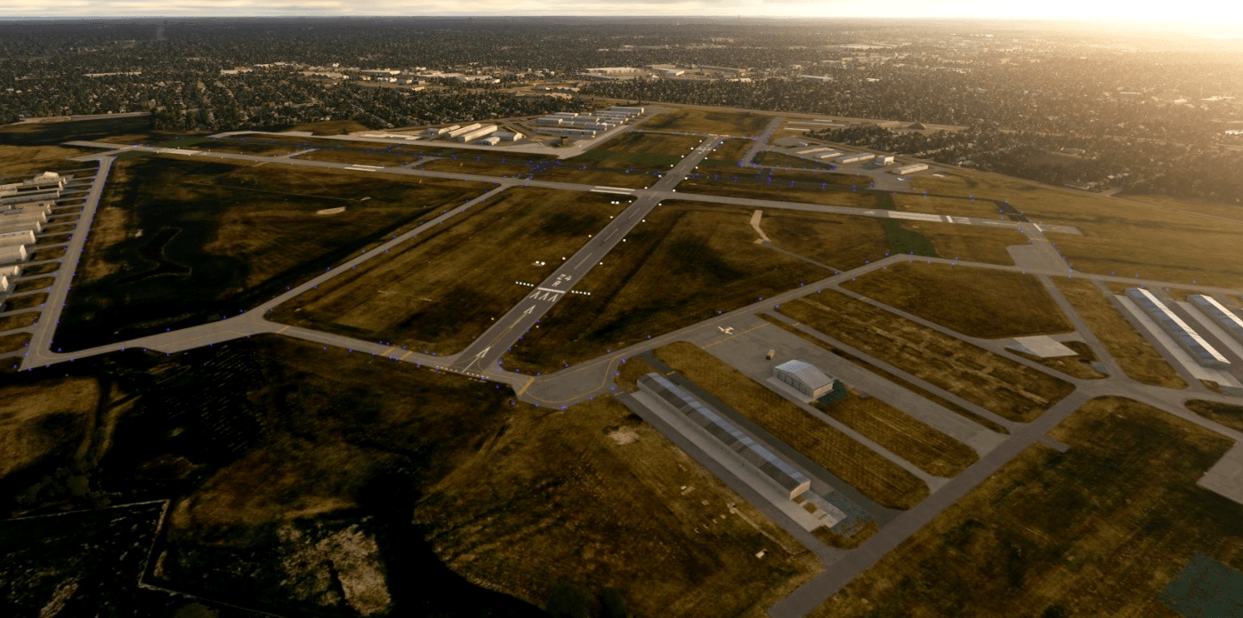 – I was able to use ADE to modify the stock airport. Thus I did not modify any other stock items such as the fueling location at the Thunderbird FBO or any of the existing COMs structure. I did add a new fuel location near the tower as this I understand is the new self-serve location.