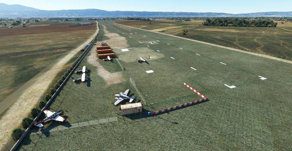 Kolchiko Airfield is the home base of the New Thessaloniki Aeroclub and Mikra Aeroclub as well.Prior 2017 was exactly as by default included in MSFS,nothing more than a dirt airstrip.However after Fraport took over Thessaloniki International Airport where both Aeroclubs were based at,the little airstrip became their permanent base as they practically forced to move out due to the overwhelmingly high costs and complicated procedures induced by the new Airport owner.