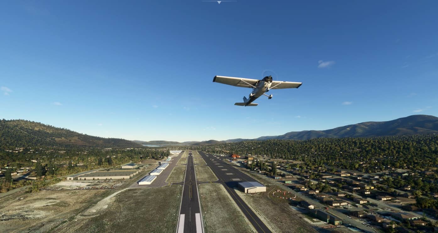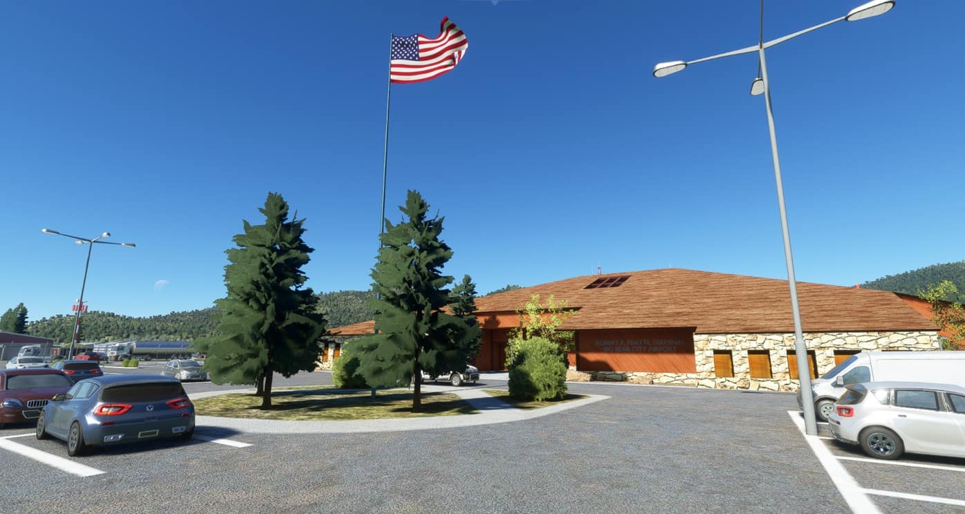 – Custom Terminal (Big Bear Airport/Barnstormer Restaurant) with parking lot.- Various custom hangars.- Repaved aprons.- Repaved Runway and updated markings (with patch marks)- Custom Rotating Beacon.- Custom Segmented Circle.- Custom Cellular Antenna SW of the airport.- Added parking spots.- Changed ALL trees to pine trees around airport and surrounding mountains..-Added Perimeter fence.- Added a few photogrammetry style buildings around the airport at lower detail. – Added a few misc items to make it look more interesting. – Added updated fuel island.