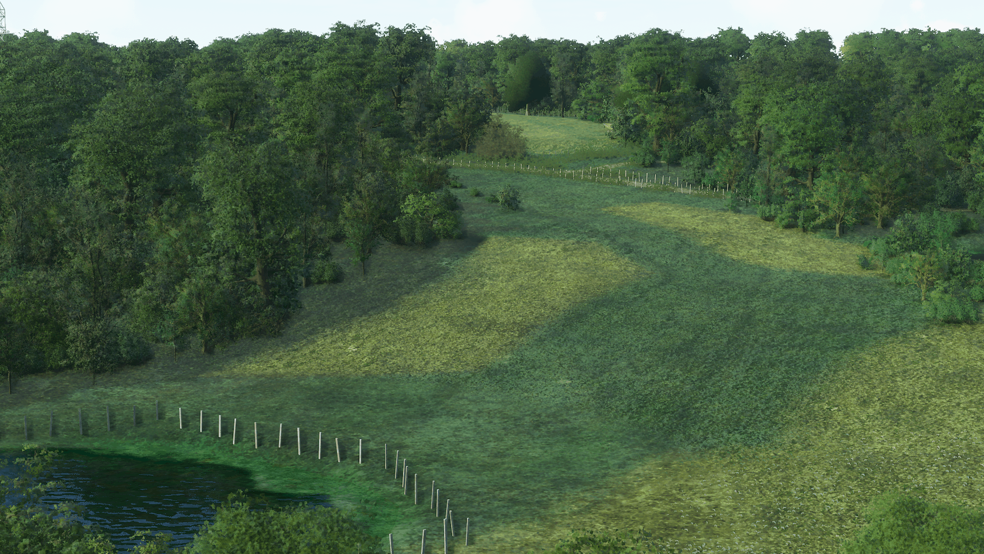 – Added the fencing which surrounds the runway, the dirt pathway, and the small pond.