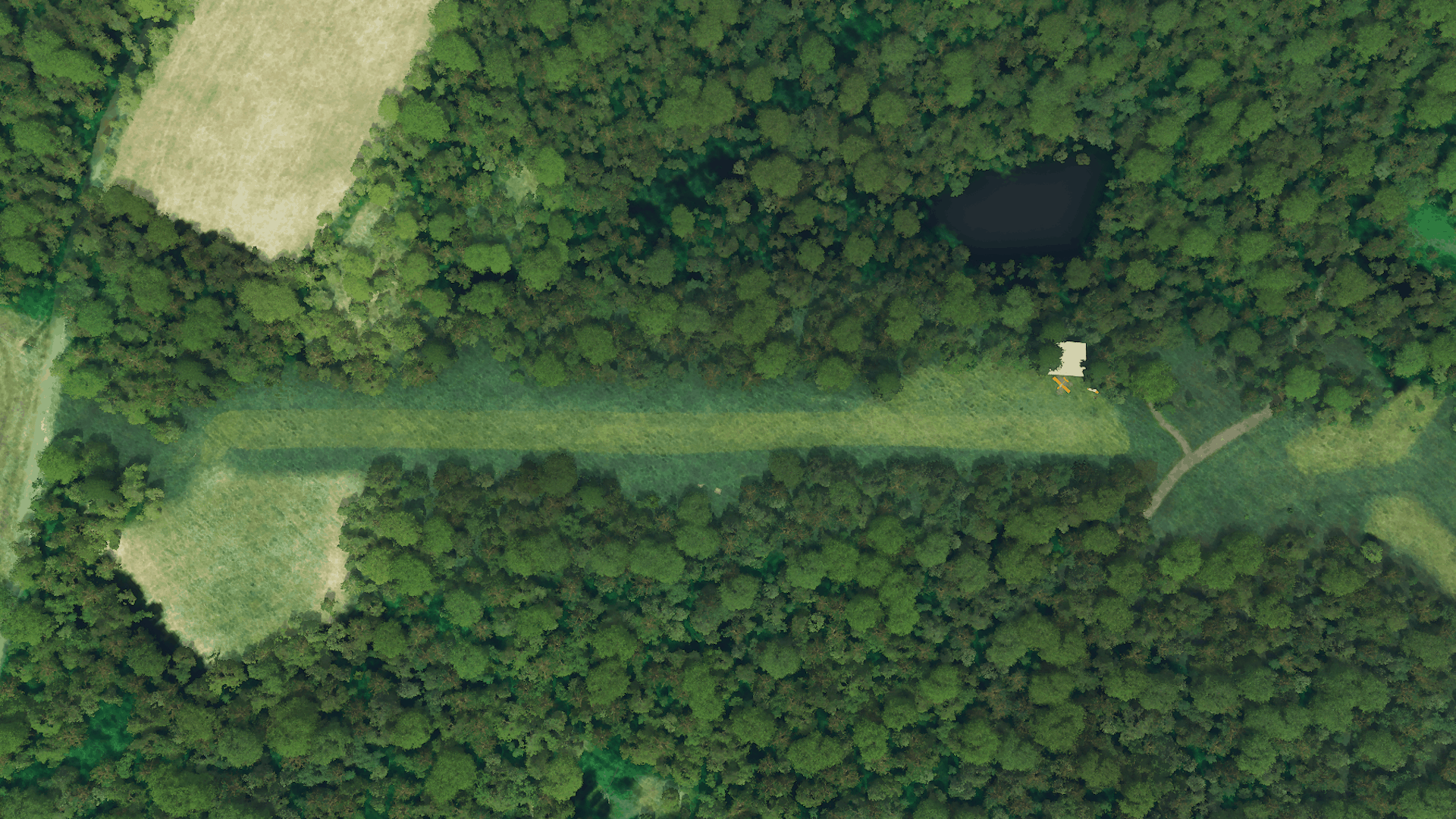 Lagarde Enval / Sainte-Fortunade is a private, 1200′ grass strip cut into a small forested region in central France. Runway headings are 04/22 with a one way in, one way out procedure. The real life identifier is LF1926 but in-game it has been changed to LFZK.