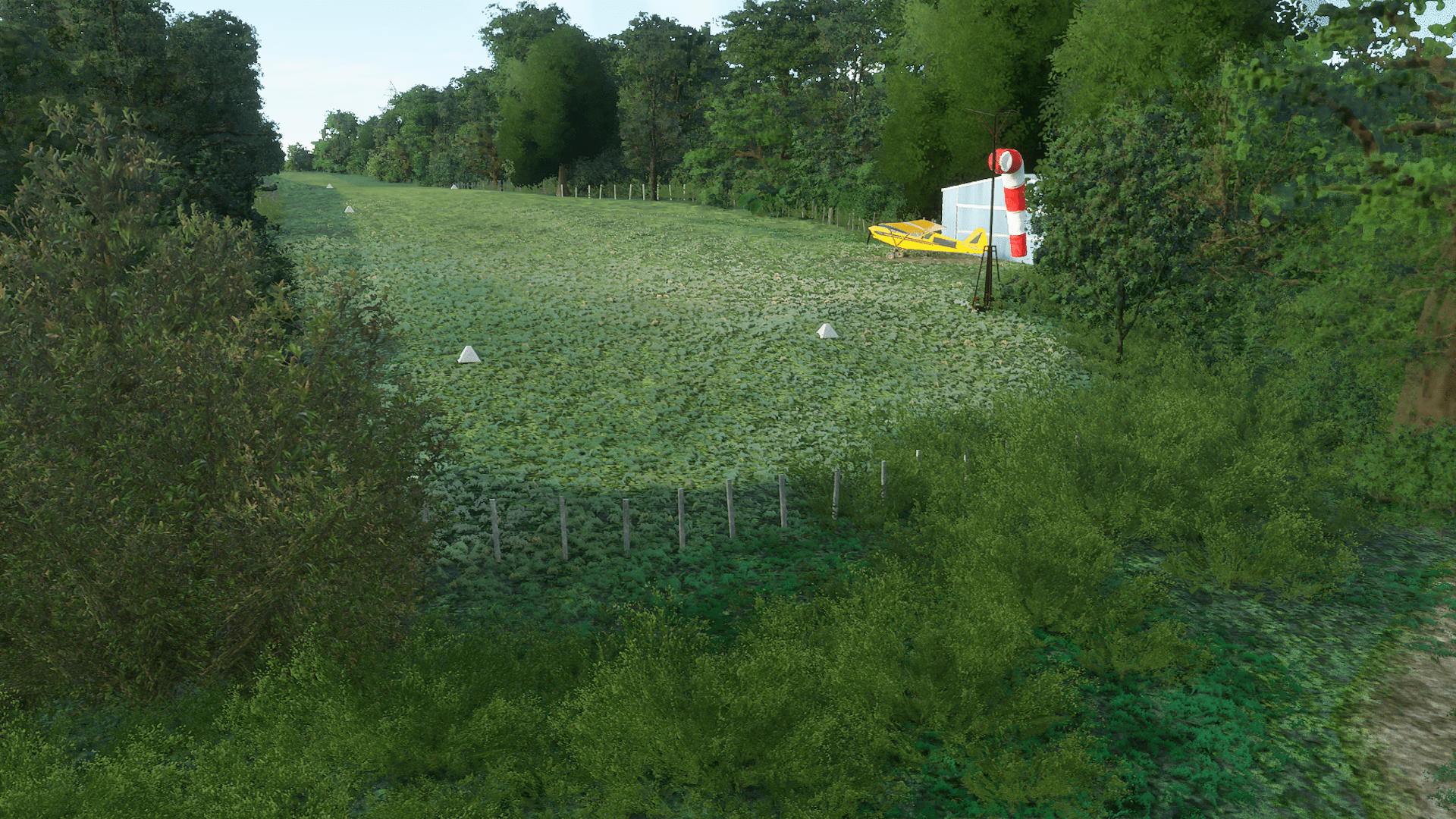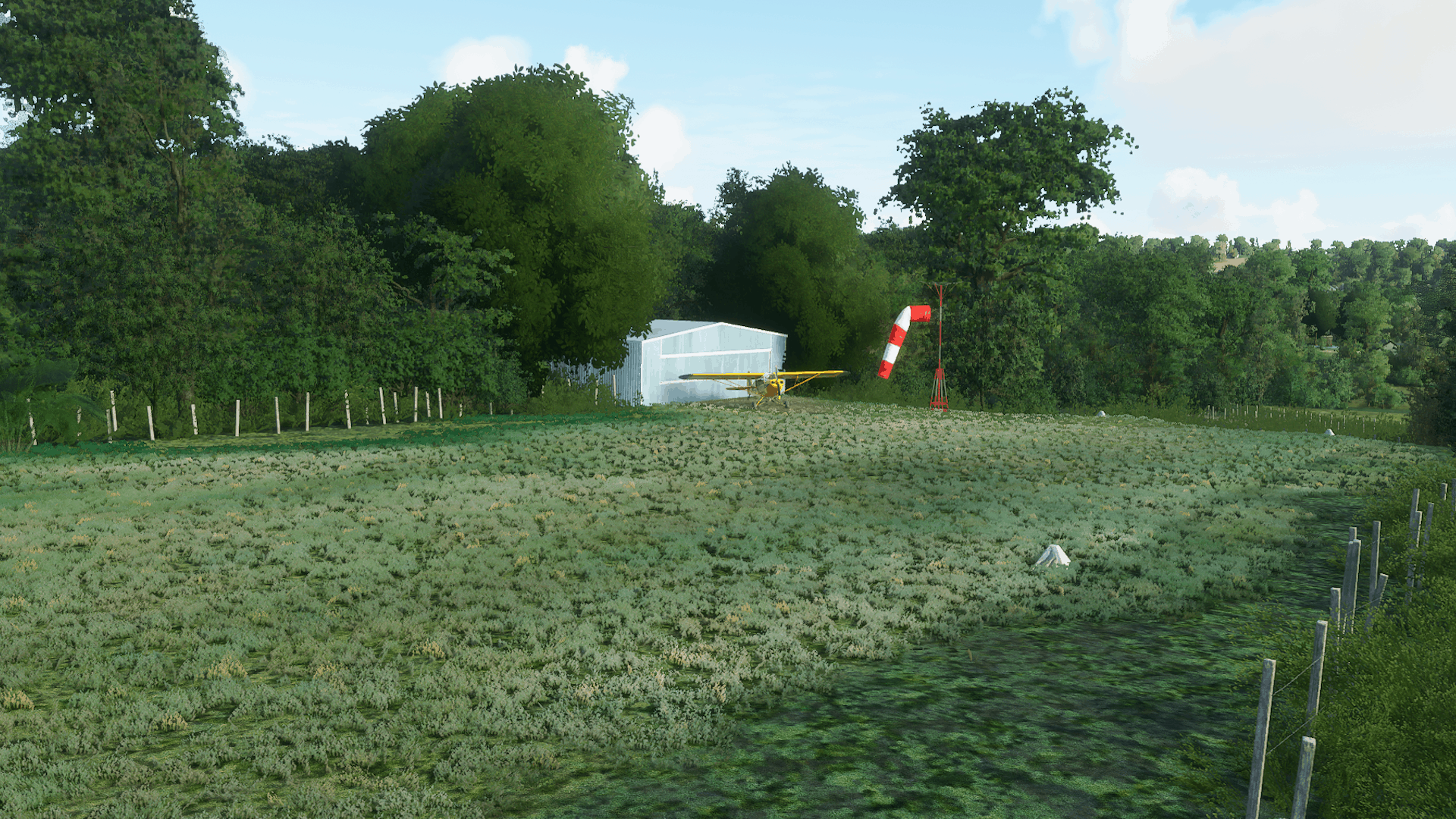 A significant upgrade to the default Sainte-Fortunade Airport (LFZK). In real life this is known as Lagarde Enval (LF1926), a private 1200ft grass strip in central France. This small grass strip provides an excellent challenge to all aircraft given its short, narrow runway and difficult approach.