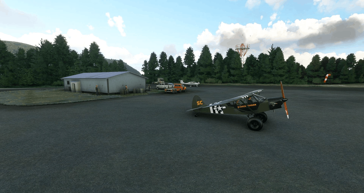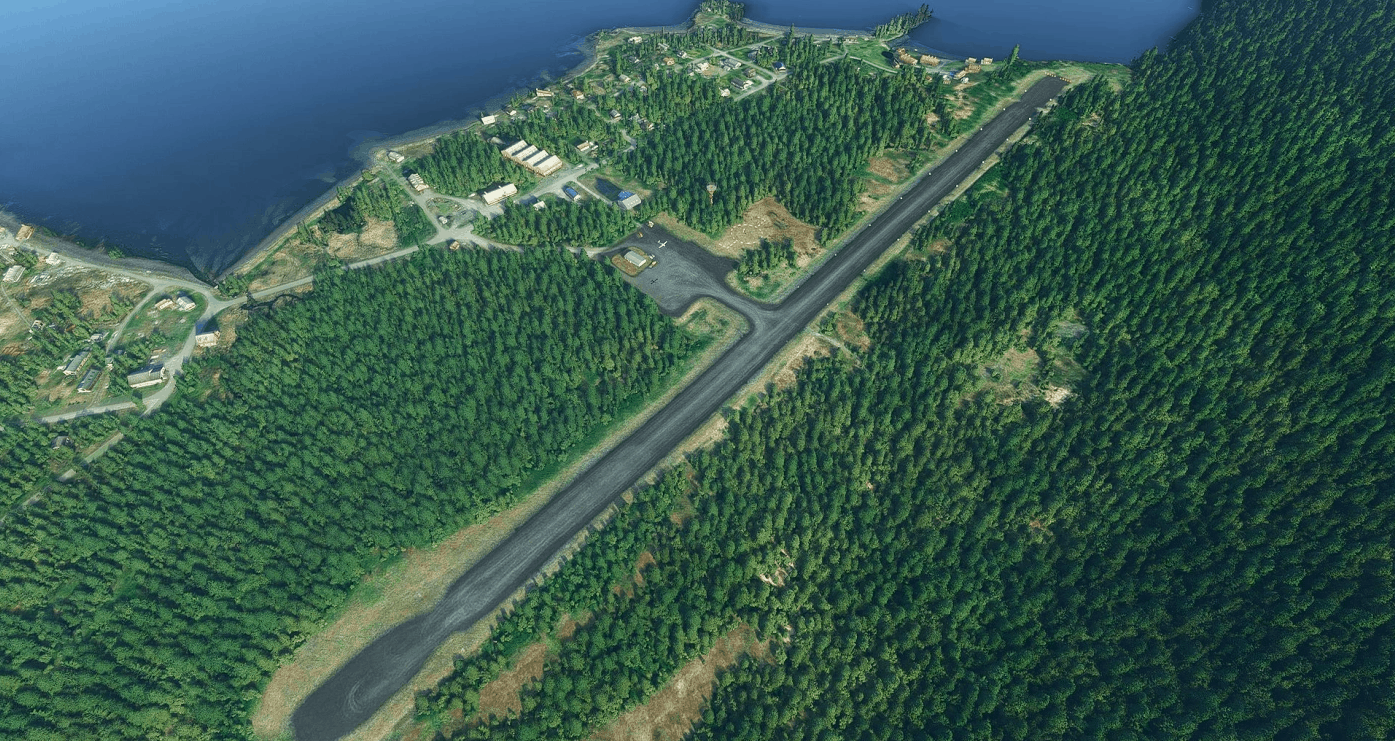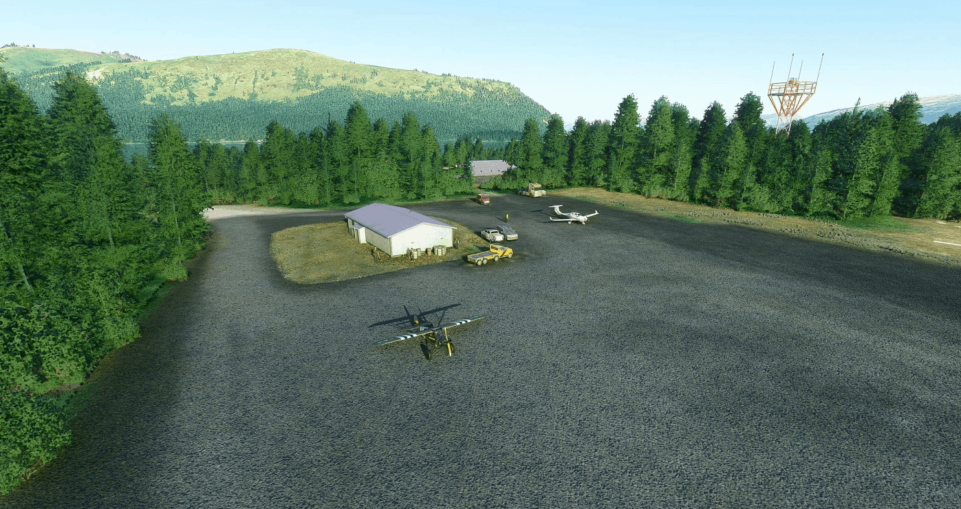 The airport has a gravel runway with VASI on both ends and is long enough to accommodate your favourite turboprop or, for the dauntless, perhaps even a small bizjet.