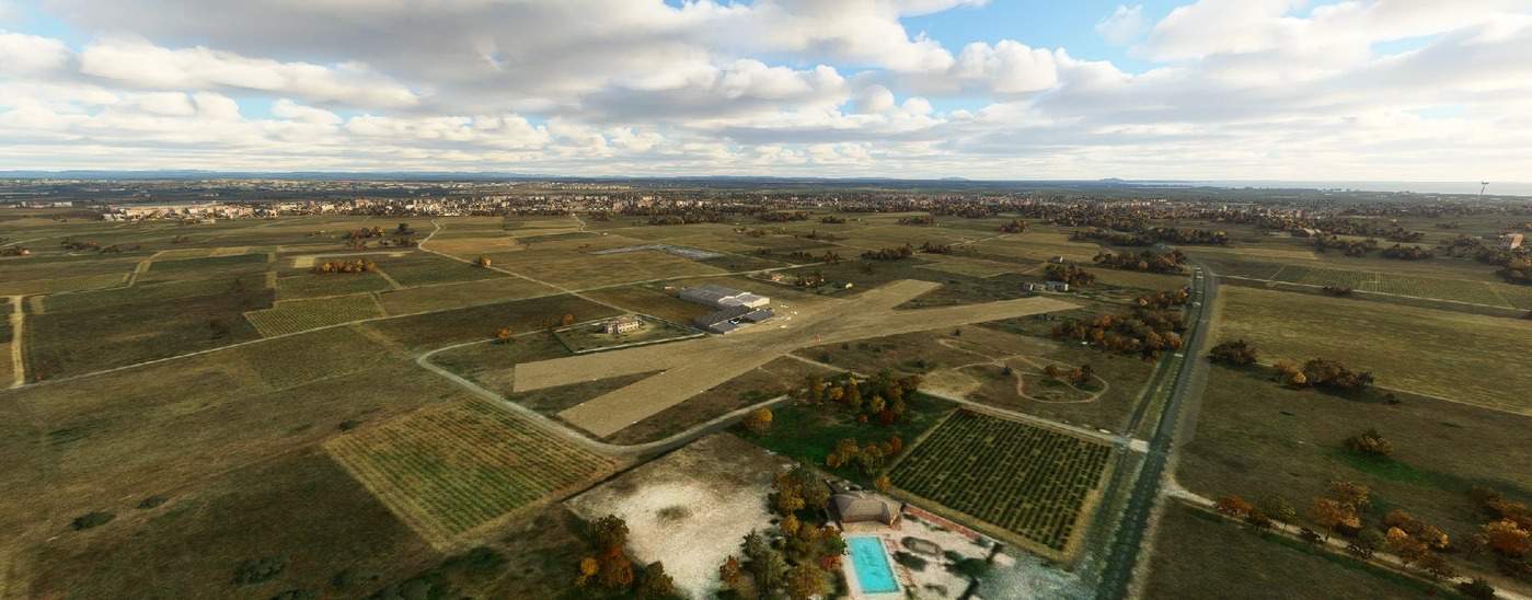 Sauvian ULM base,Vesrion 1.0 the main buildings (custom) are in place the others to come.Lovers of the region, I tried to create this ULM base again with the few photos I had. All is not perfect, but the surroundings are beautiful and the ‘small airports’ are few and often starving.My first airport, with in passing a thanks to FoxhoundULM and his helpful tutorials.