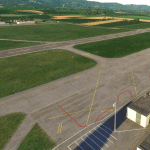 Je vous laisse découvrir la scène que j’ai retravaillée : piste, taxiway, parking, feux de piste, numérotation des parkings (en cours), quelques objets déco génériques FS.