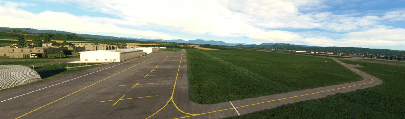 Je vous laisse découvrir la scène que j’ai retravaillée : piste, taxiway, parking, feux de piste, numérotation des parkings (en cours), quelques objets déco génériques FS.