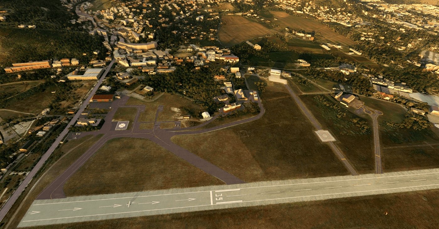 The runway is orientated 17/35; due to a slight northward slope (-2.19%), it is preferable to land at runway 17.
