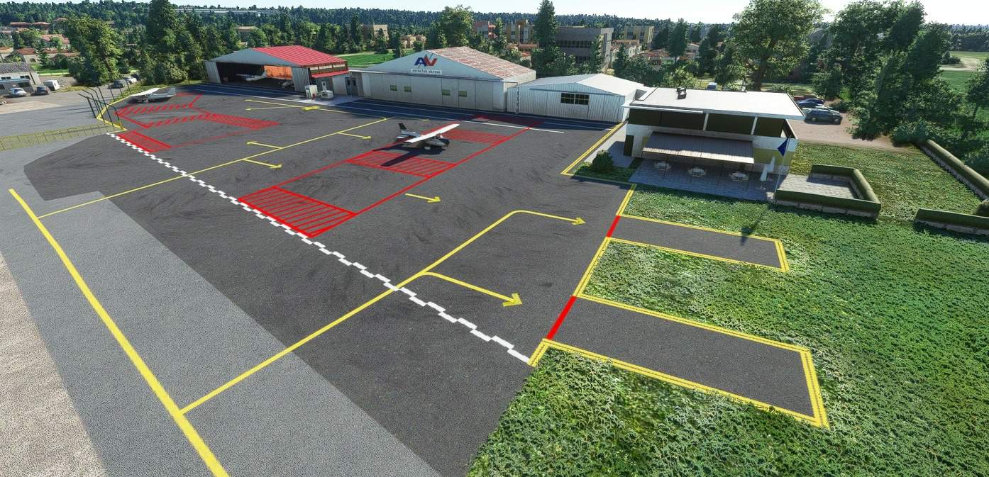 Added all custom buildings with PBR materials in the “Aeroclub Varese” area